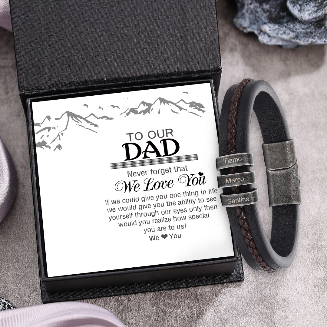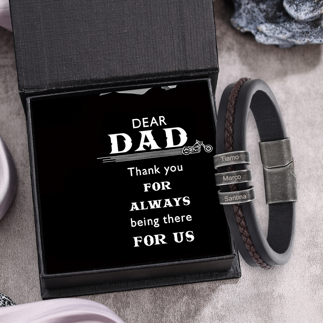 Personalized Mens Leather Braided Bracelet Custom 3 Names for Him