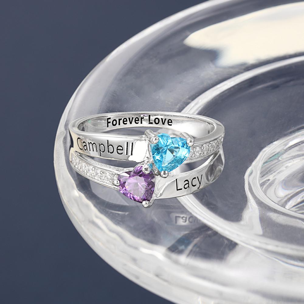Personalized: Can choose 2 birthstones, engraving 2 names and 1 inside text on the Ring