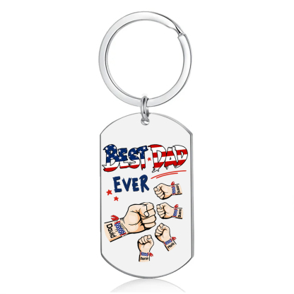 Personalized 5 Names American Flag Keychain Fist Bump Keychain Father Gifts - Best Dad Ever