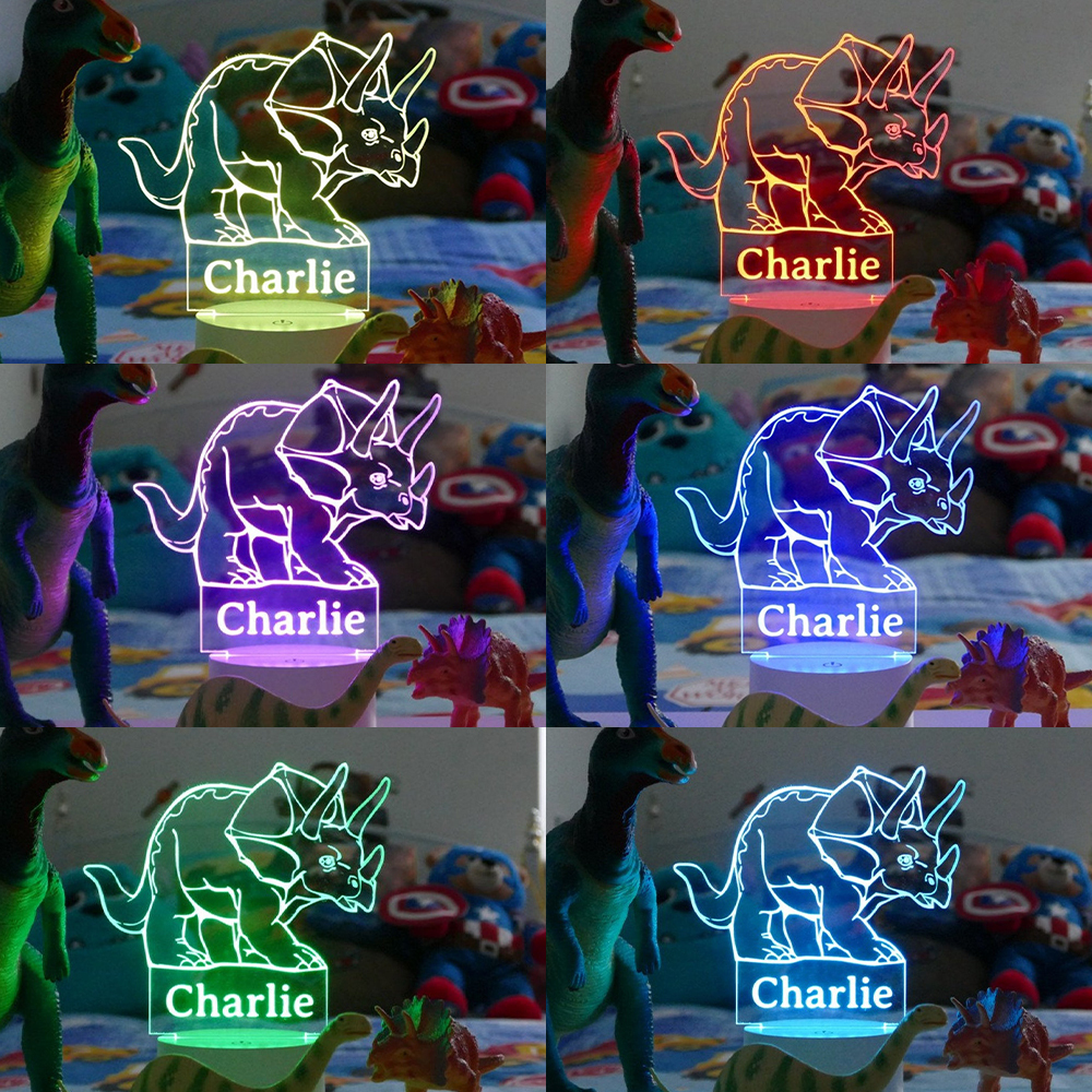 Personalized Triceratops Night Light Changeable Color Lamp for Kid