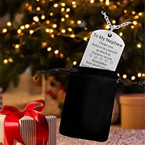 To My Nephew Dog Tag Necklace Inspirational Gift "Believe in Yourself as Much as I Believe in You"