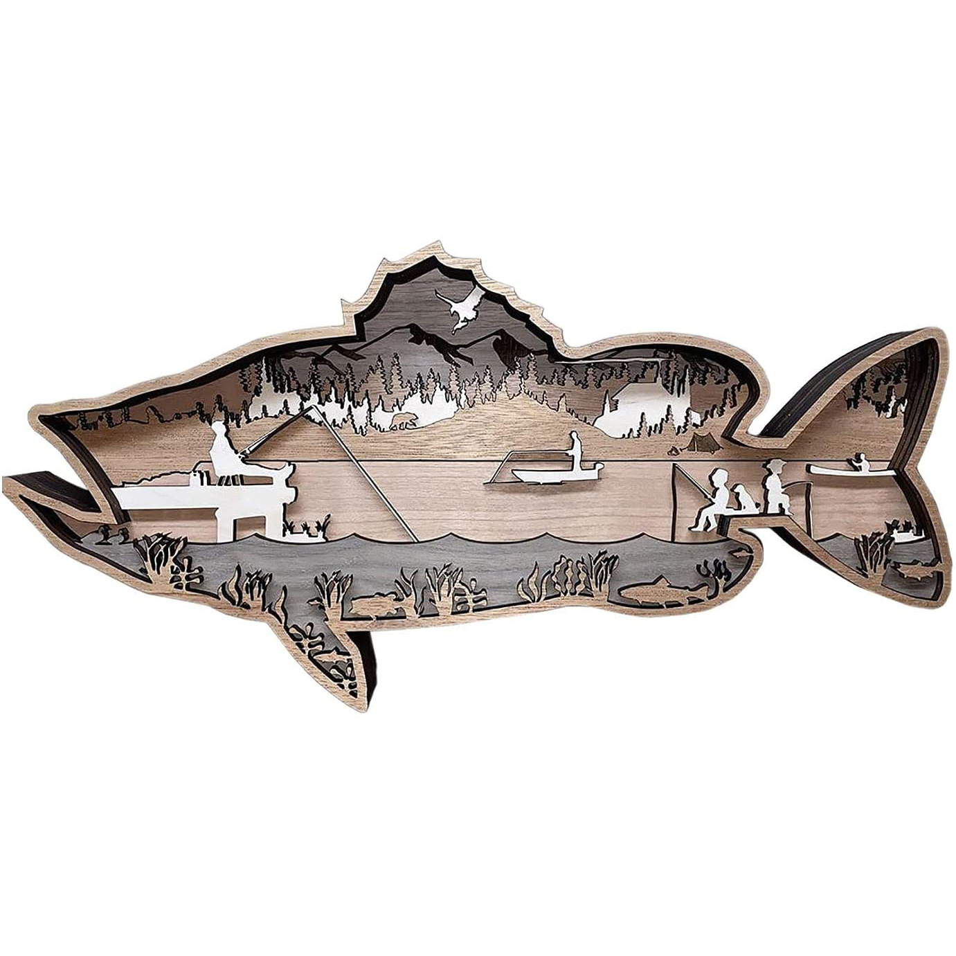 Fish Wooden Home Decoration Vintage 3D Carving Wall Hanging
