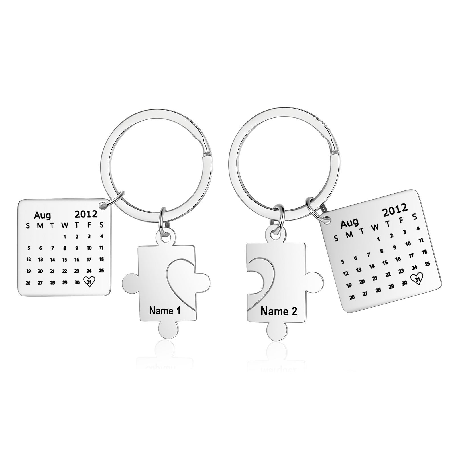 Personalized Puzzle Keychain Customized with 2 Names & Date Keychain Calendar Couple Matching Gift