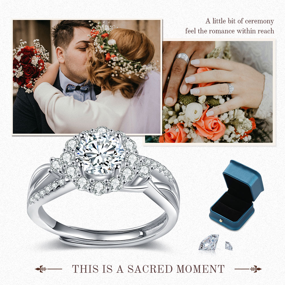 Flower Shape Moissanite Ring Classic Round Cut Engagement Rings Solitaire Ring with CZ Stones