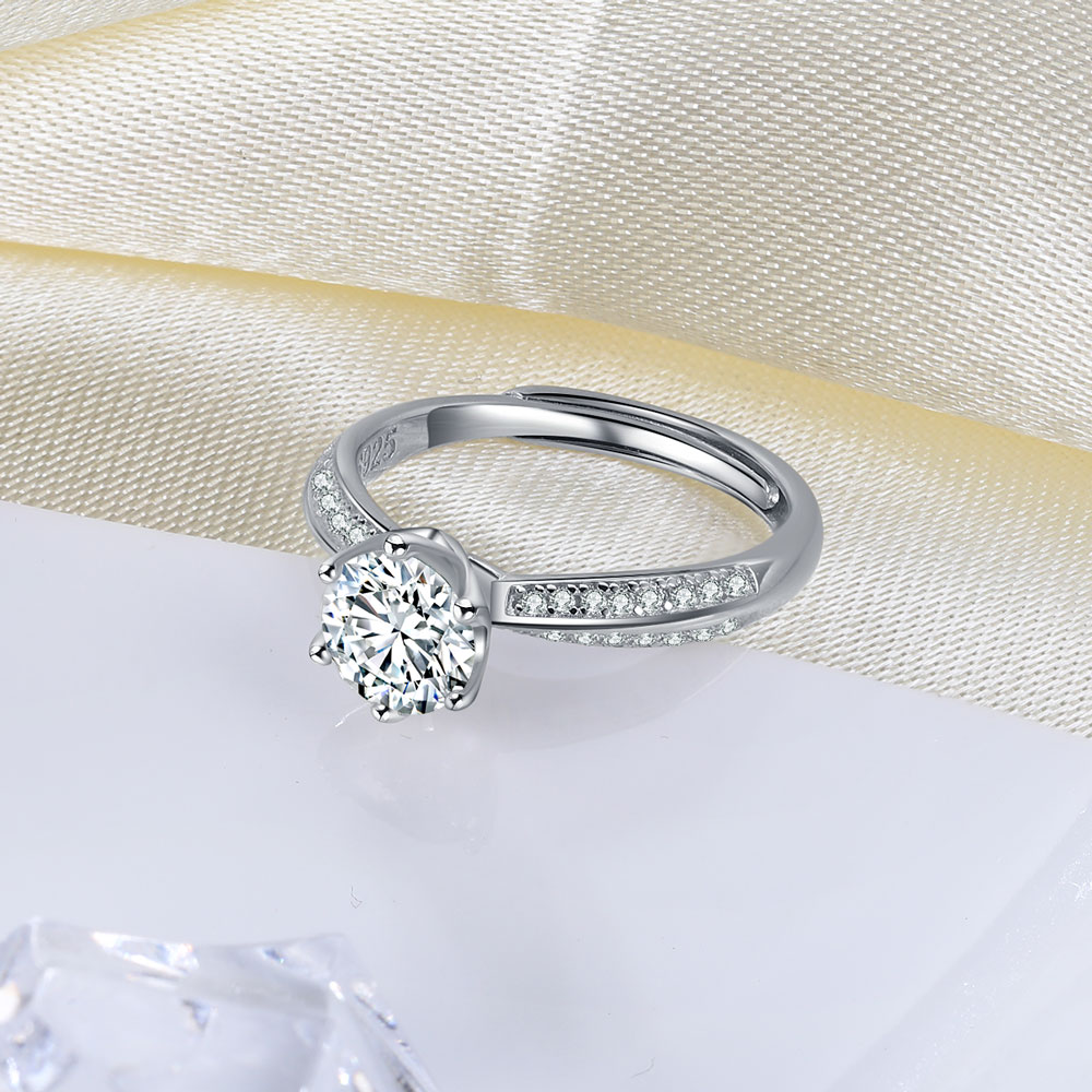 Round Moissanite Ring Engagement Ring with CZ Stones