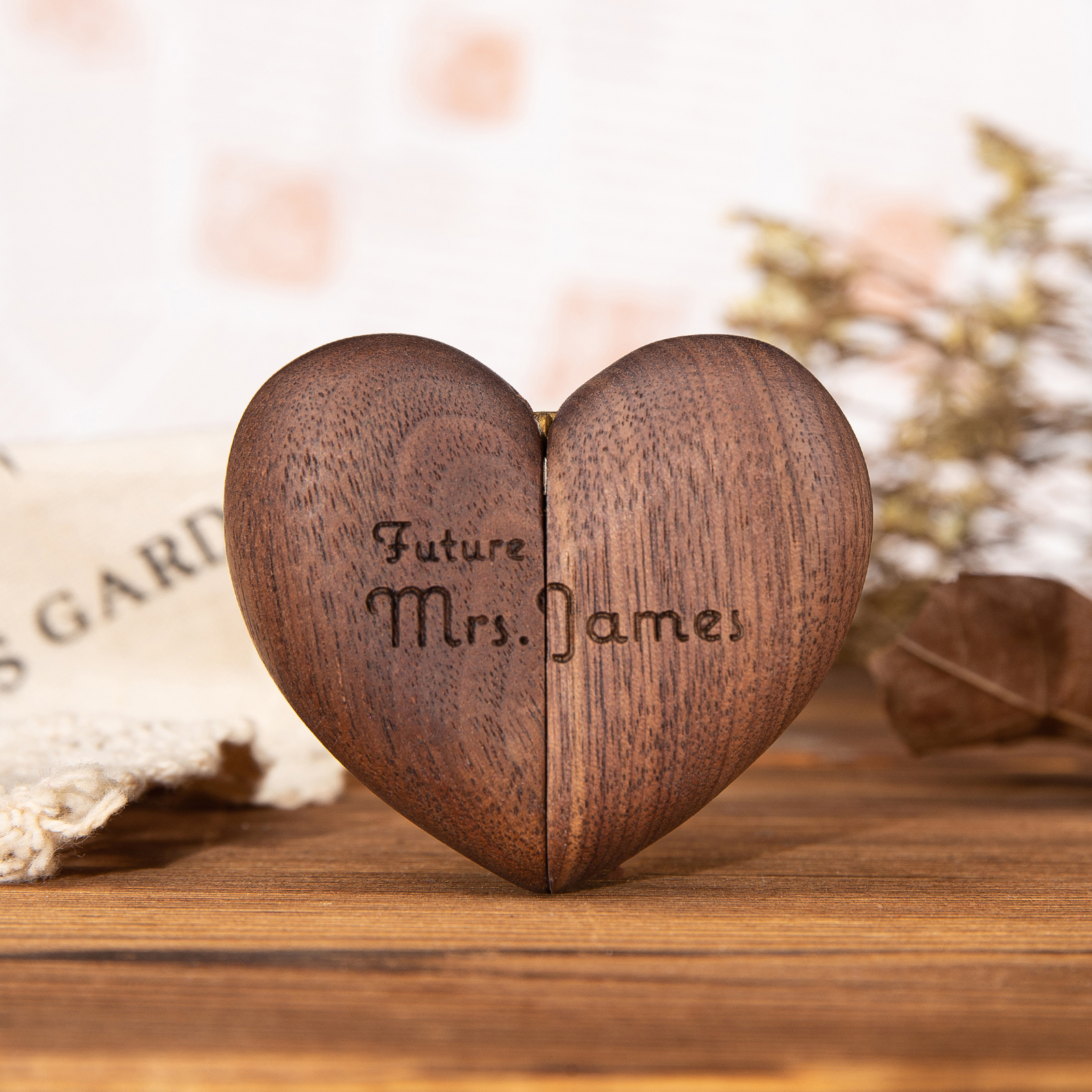 Personalized Heart-shaped Solid Wood Ring Box for Proposal