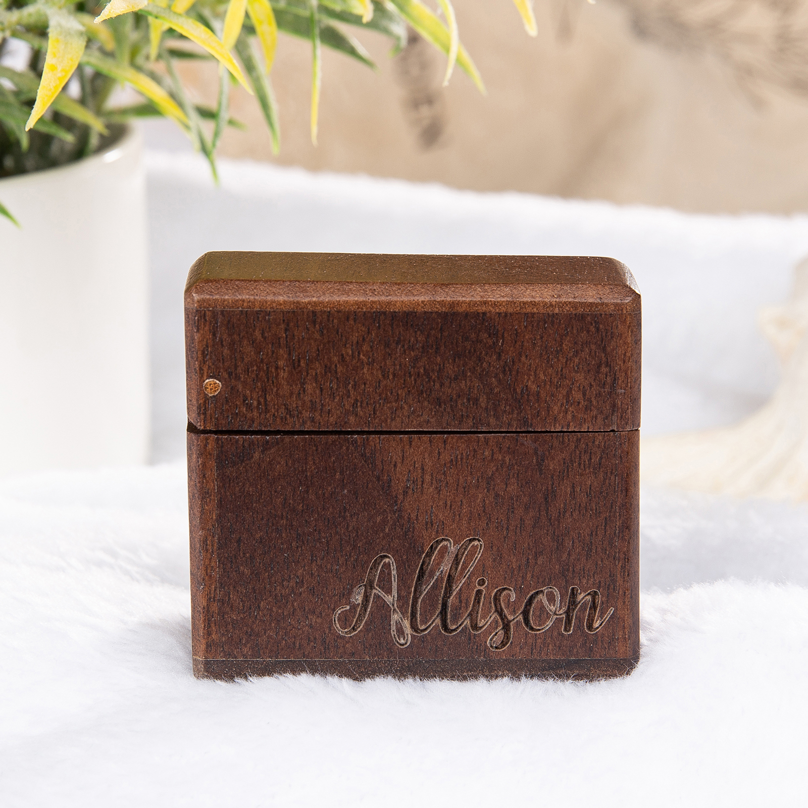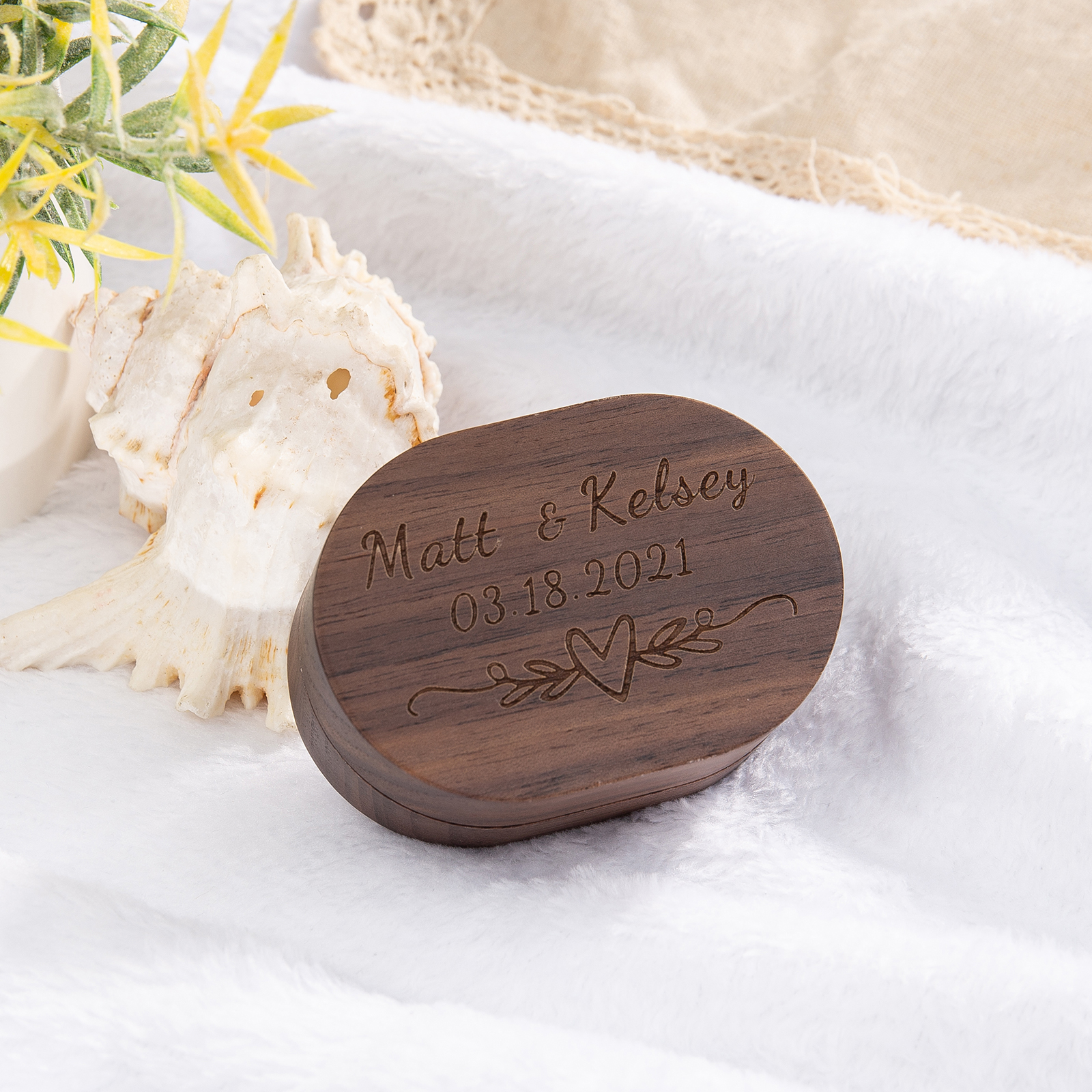 Personalized Name and Date Wooden Ring Box for Wedding