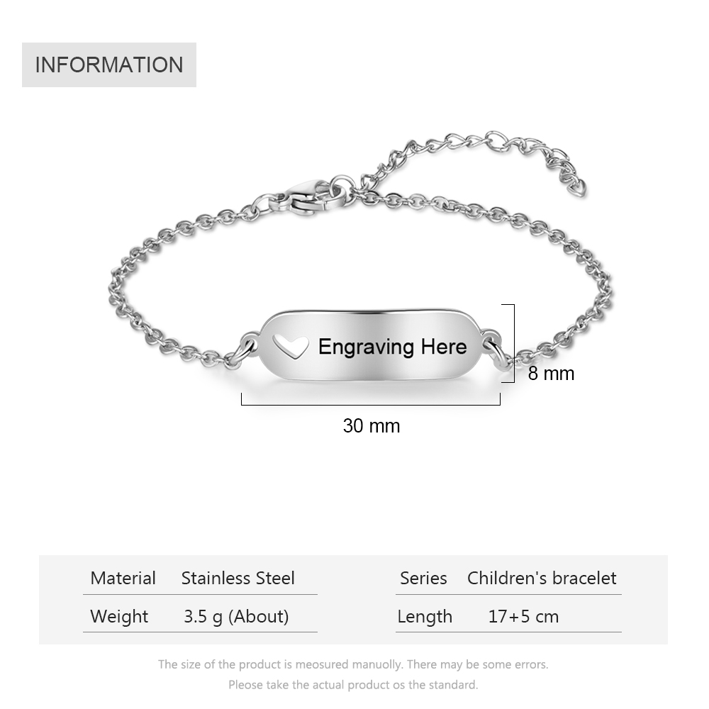 Personalized Heart Bracelet Custom Name ID Bracelet for Kids