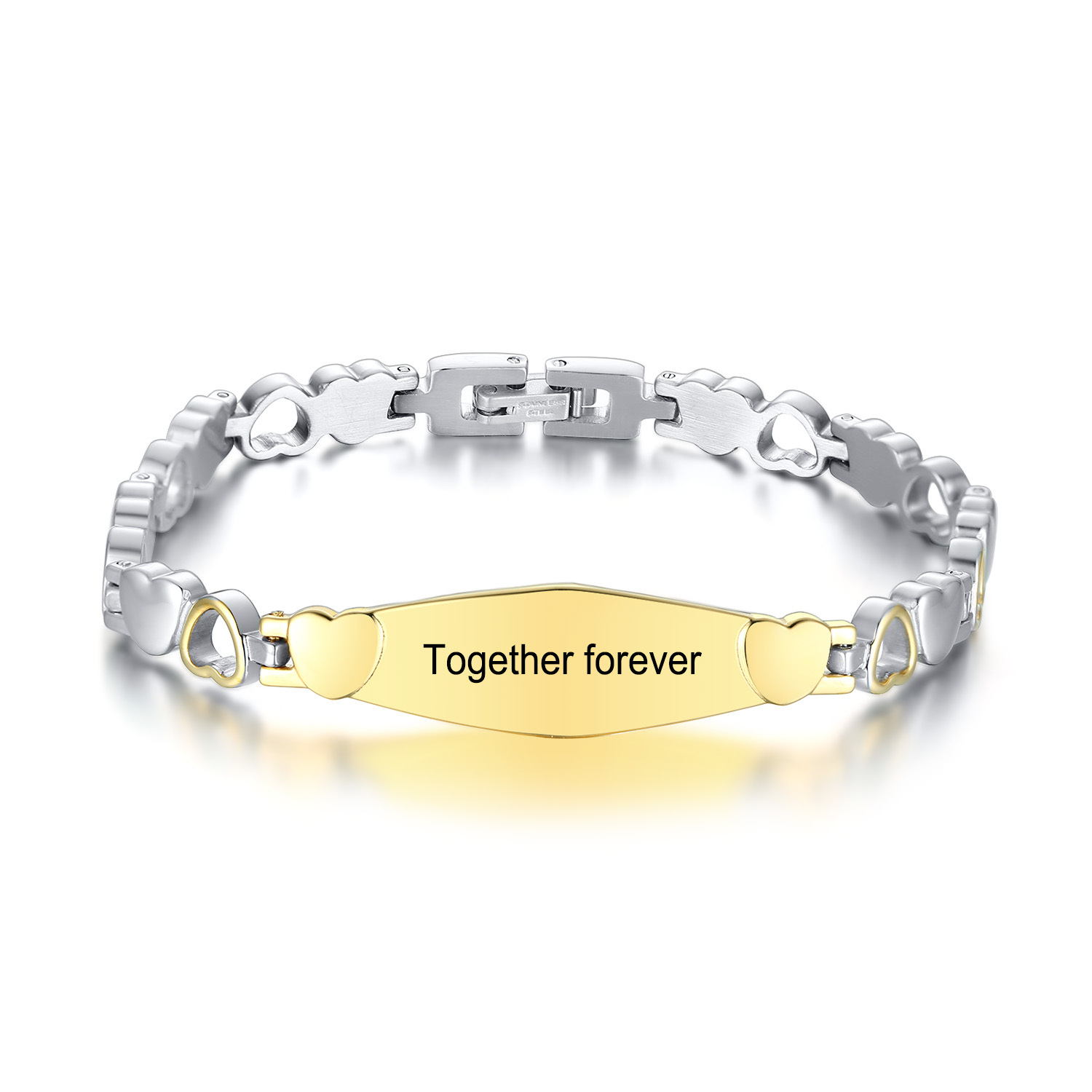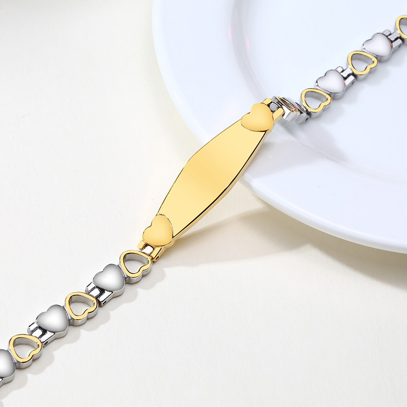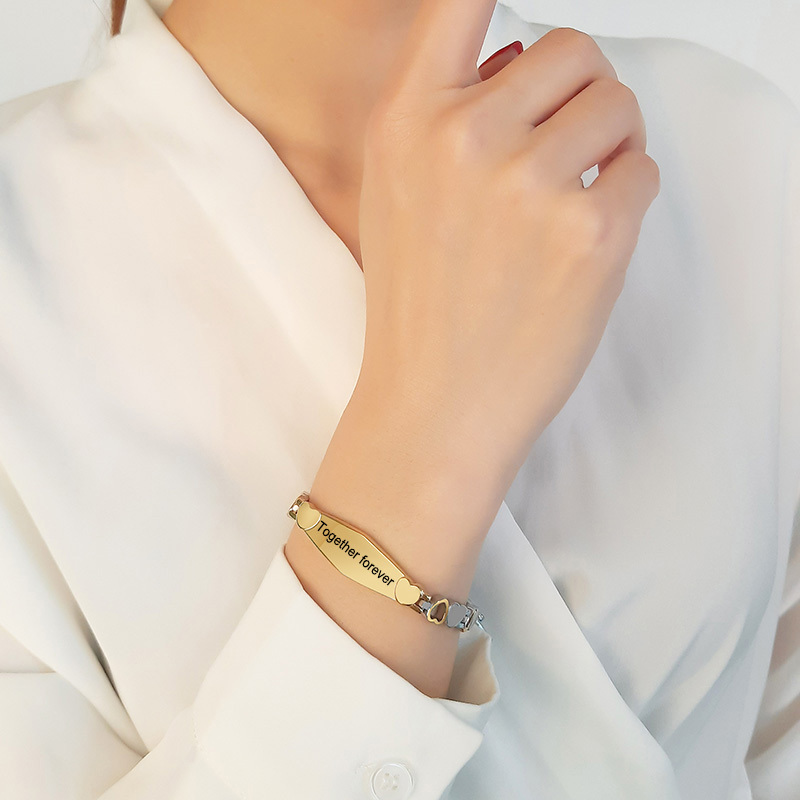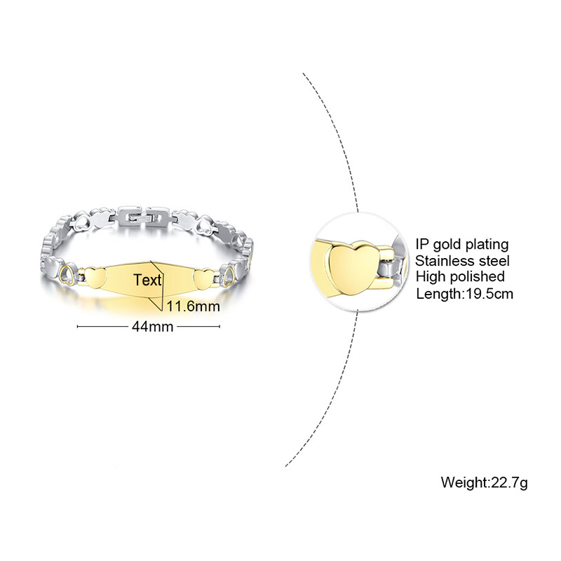 Personalized ID Bracelet Engraved Text Heart Bracelet for Her