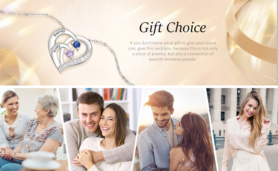 Personalized: Can choose 2 birthstones, engraving 2 names on the pendant