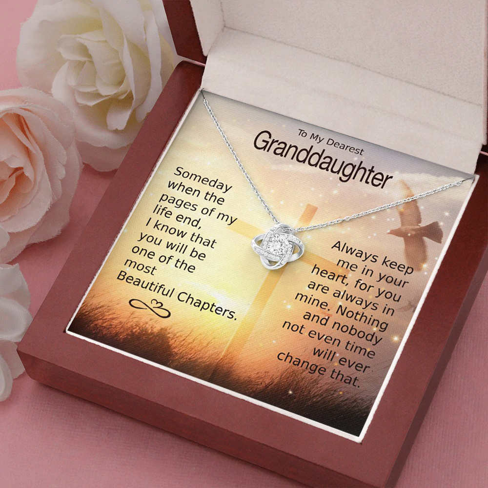 To My Dearest Granddaughter Love Knot Necklace "Always Keep Me in Your Heart"