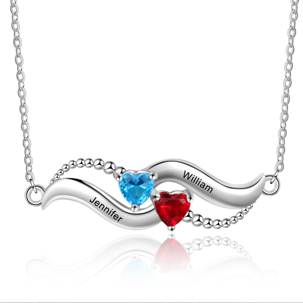 Personalized Heart Pendant Necklace with 2 Birthstones Custom 2 Names Family Necklace