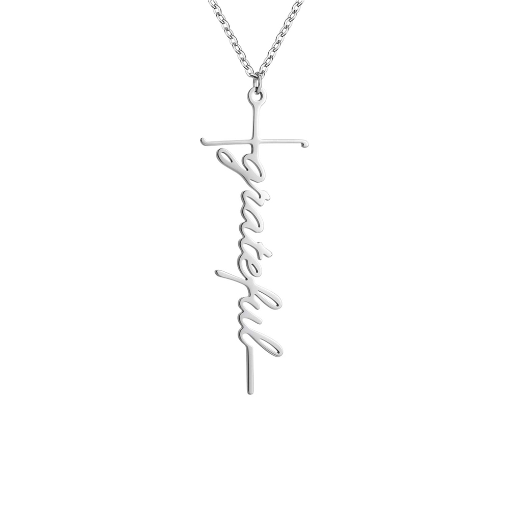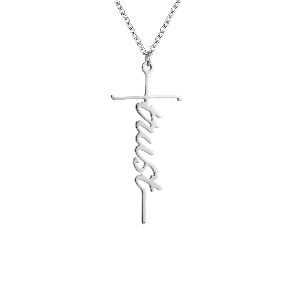 Confirmation Gift Faith Cross Pendant Necklace Stainless Steel Letter Necklace