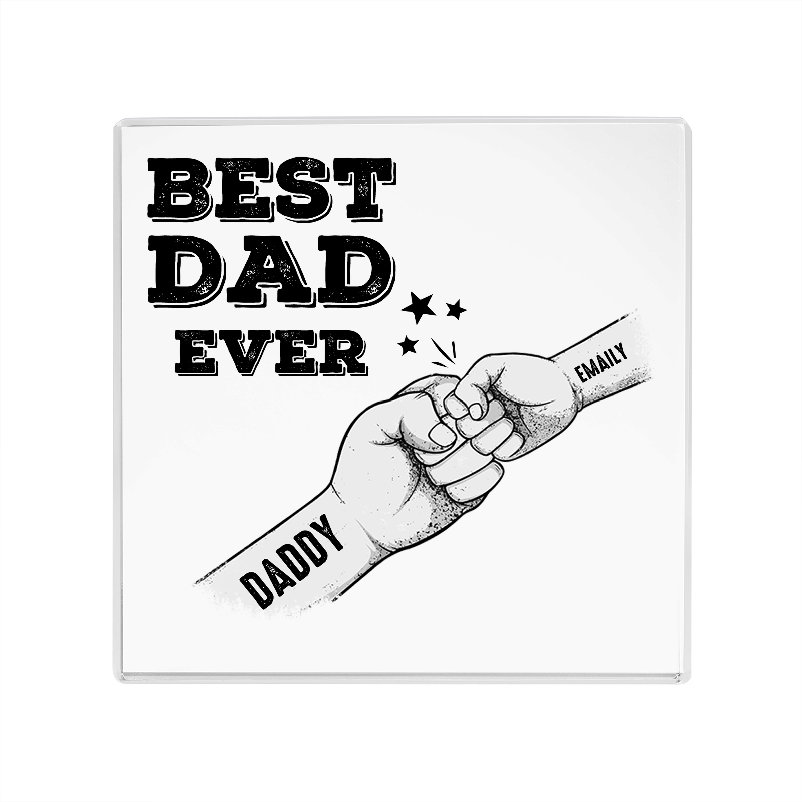 Personalized 2 Names Acrylic Square Keepsake Fist Bump Rectangle Plaque Father's Day Gifts - Best Dad Ever