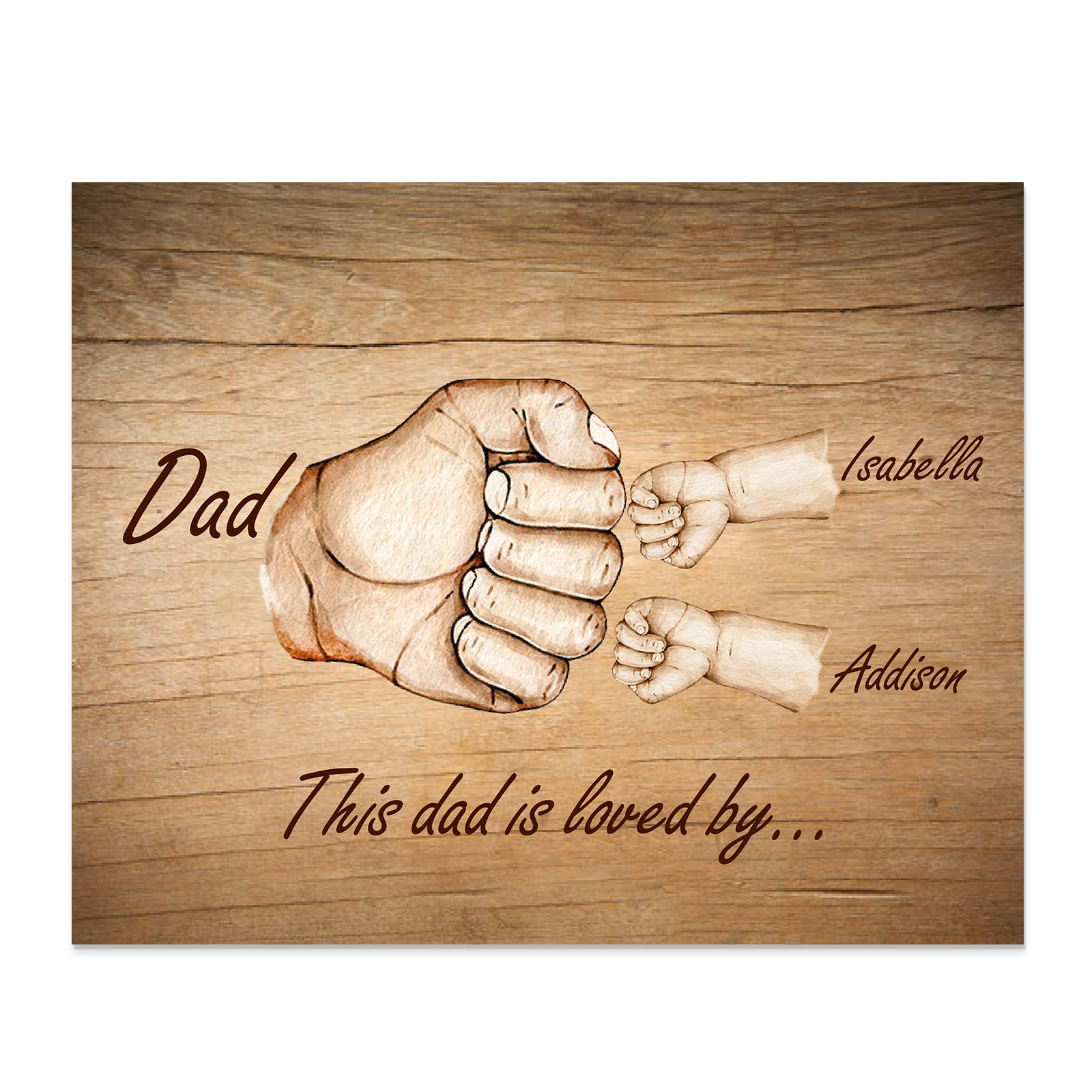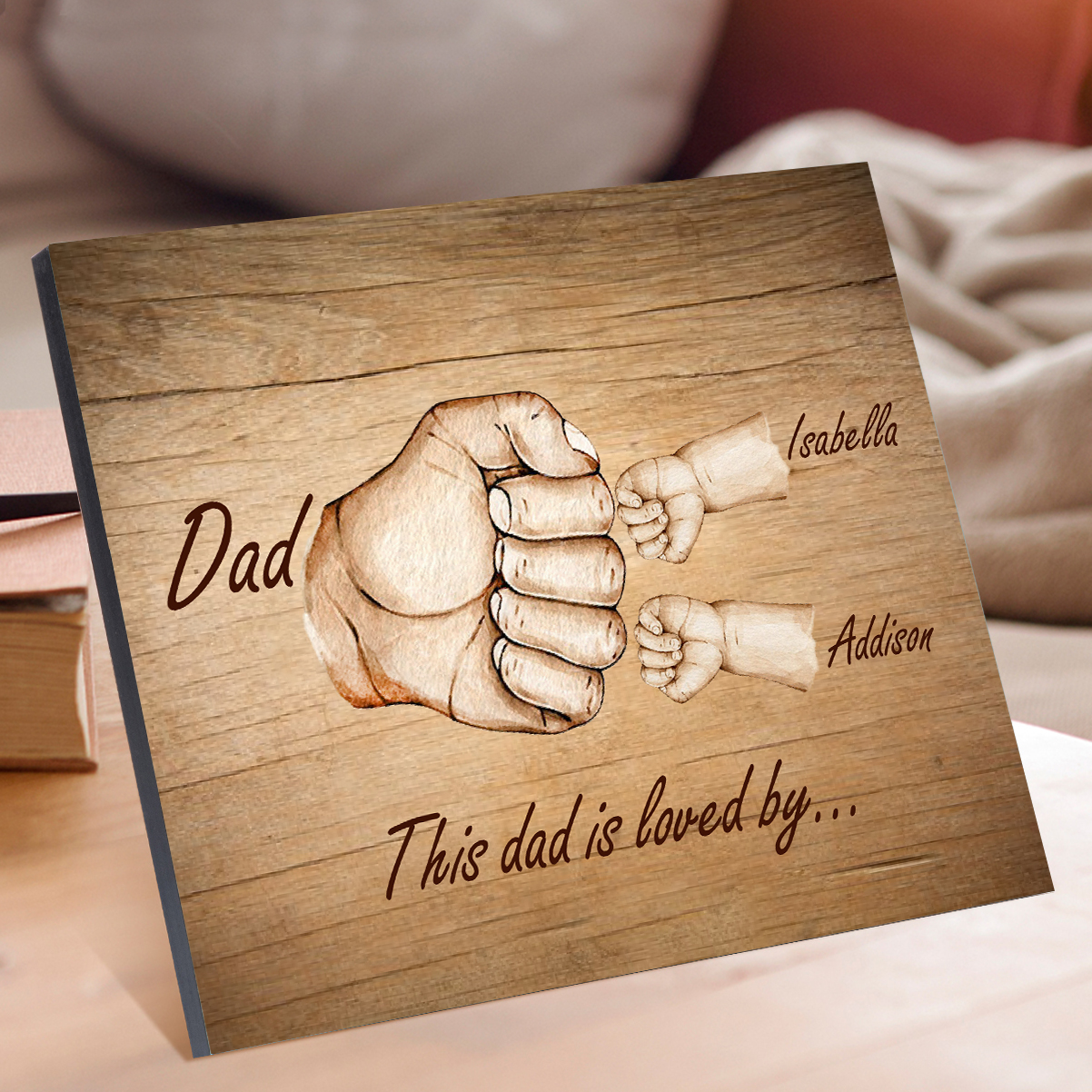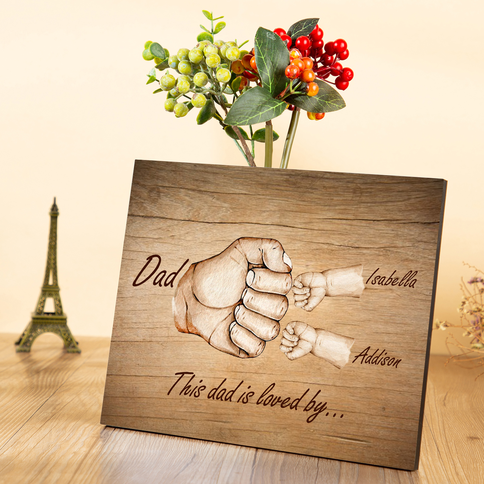 Personalized 3 Names & 1 Text Wooden Plaque Custom Fist Bump Home Decor Father's Day Gifts for Dad/Grandpa