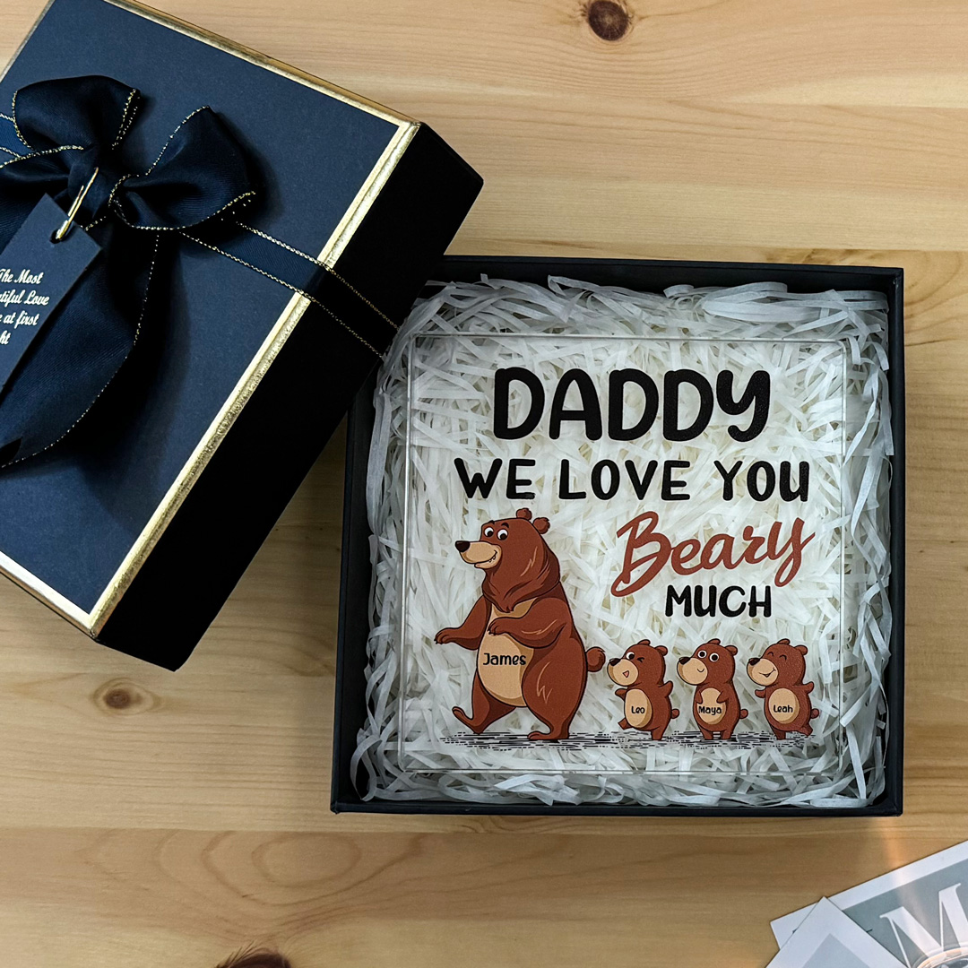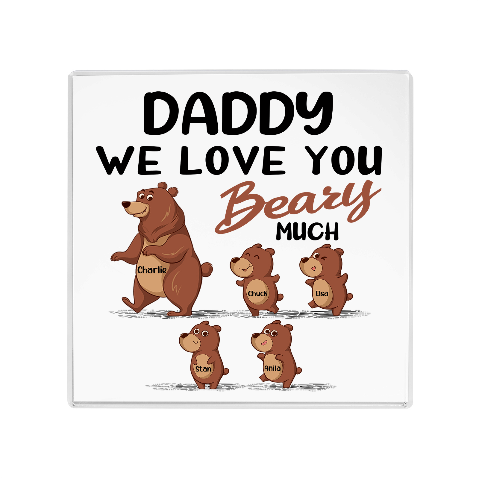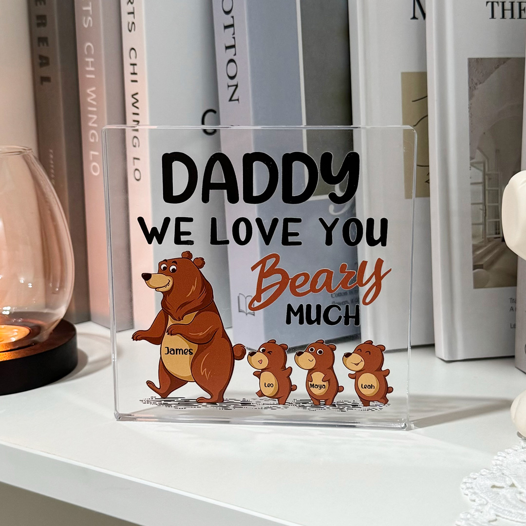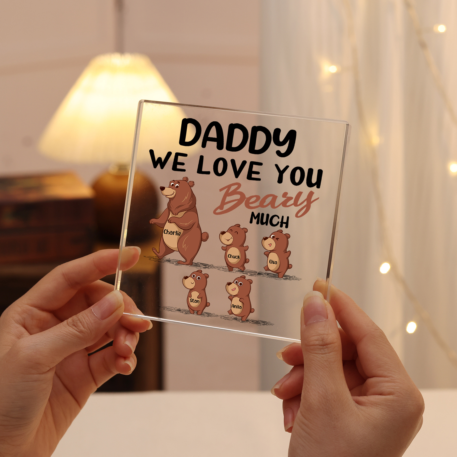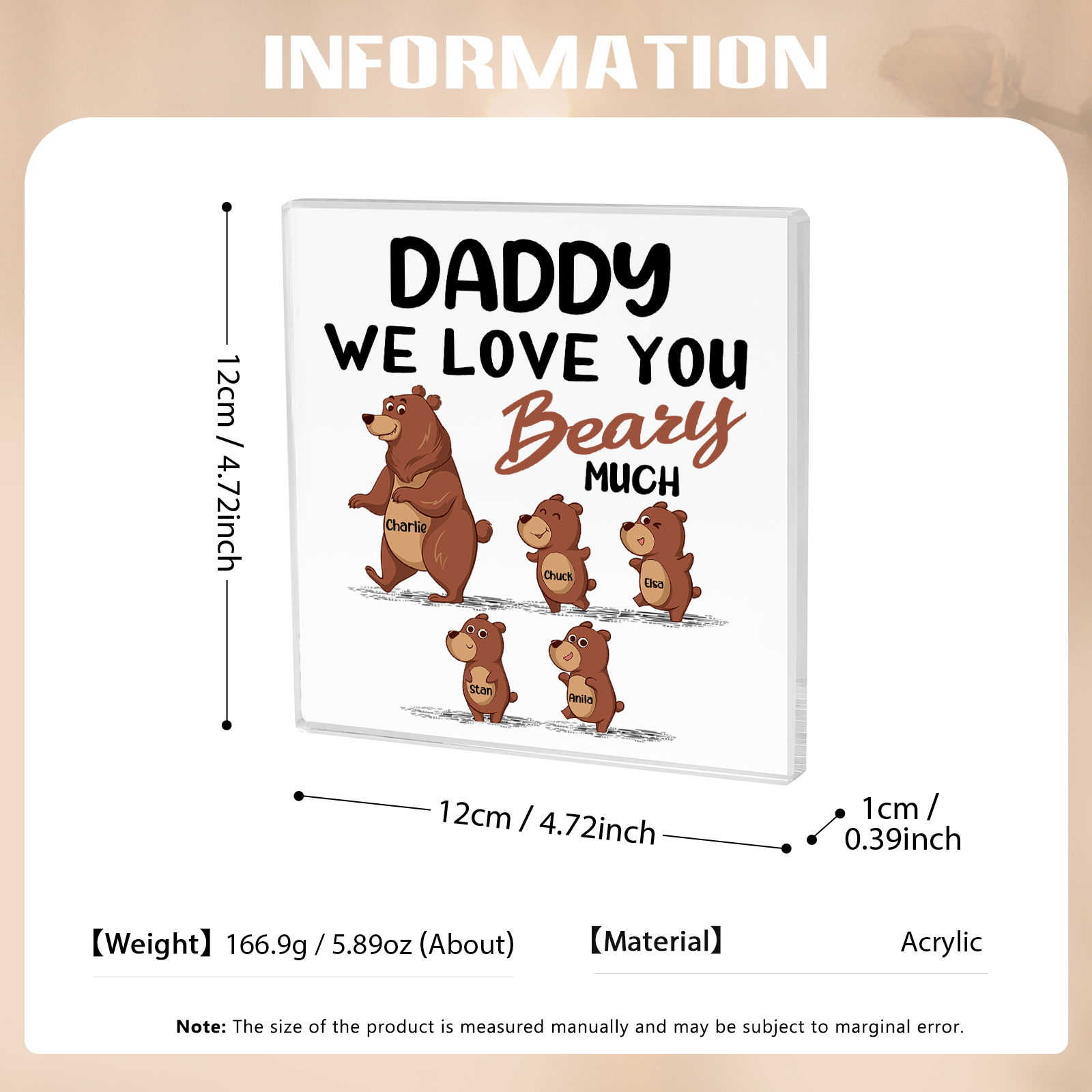Personalized Acrylic Square Keepsake Custom 5 Names & 1 Text Rectangle Plaque Home Decor Gift for Dad/Grandpa - We Love You Beary Much