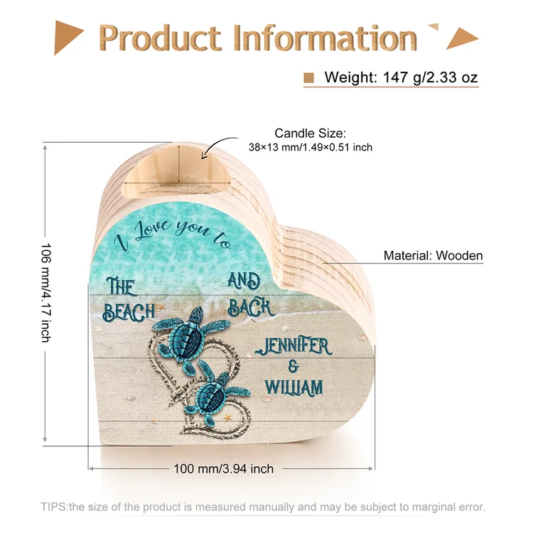 Personalized Couple Heart Candle Holder Engrave Name Turtle Wooden Candlesticks Valentines Gift