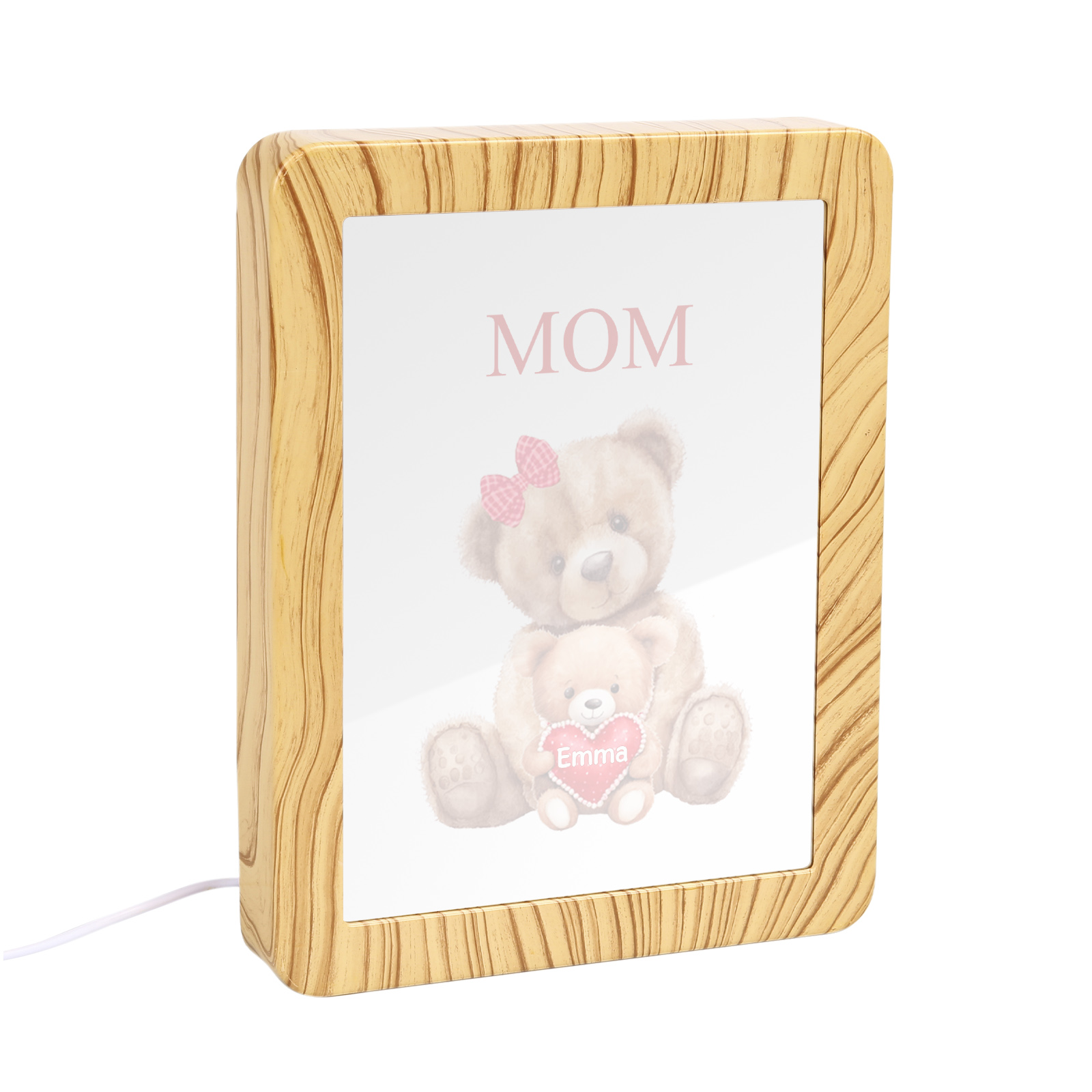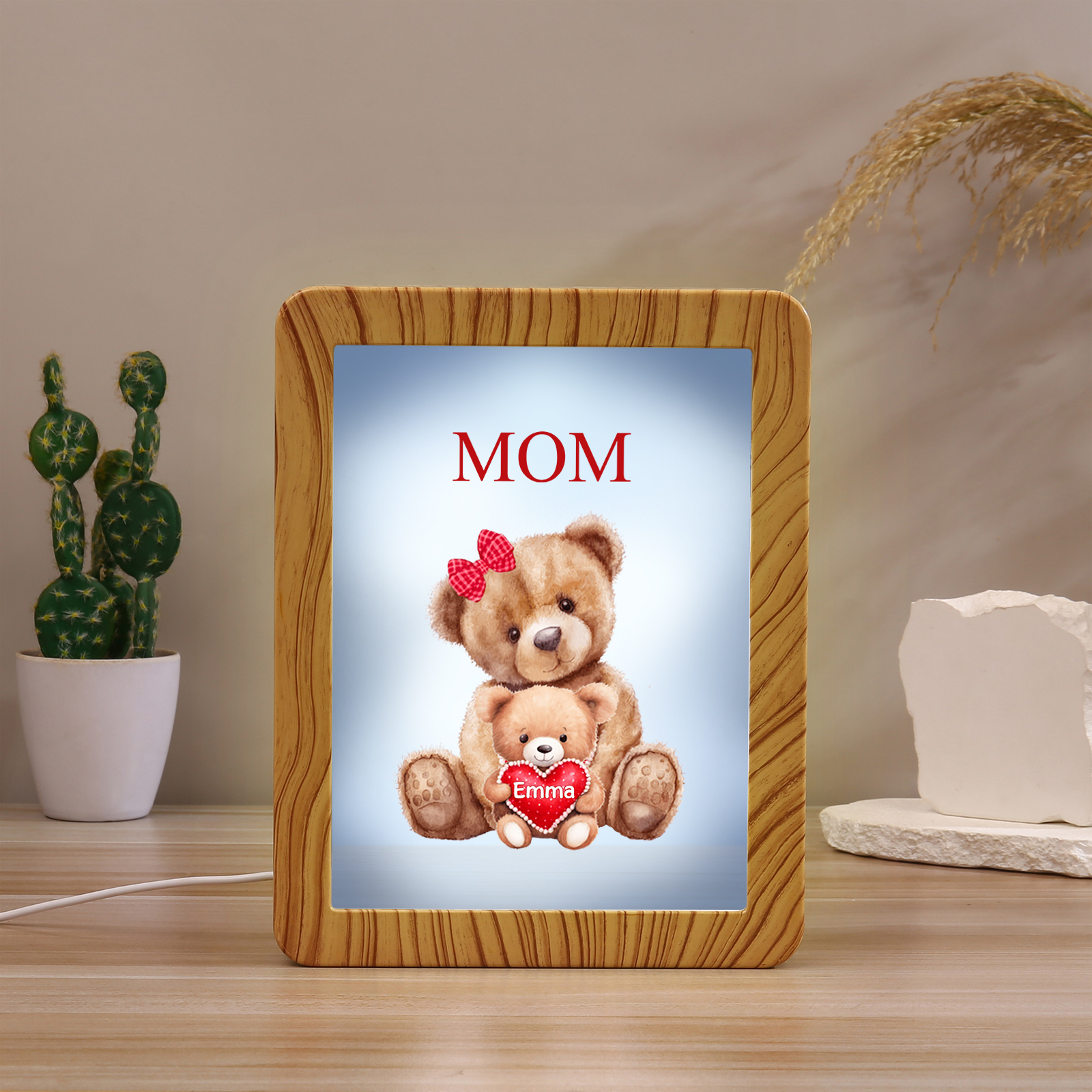 Personalized Night Light Mirror Frame Custom 1 Text & 1 Name Teddy Bear Family LED Lamp Gift for Grandma/Mother