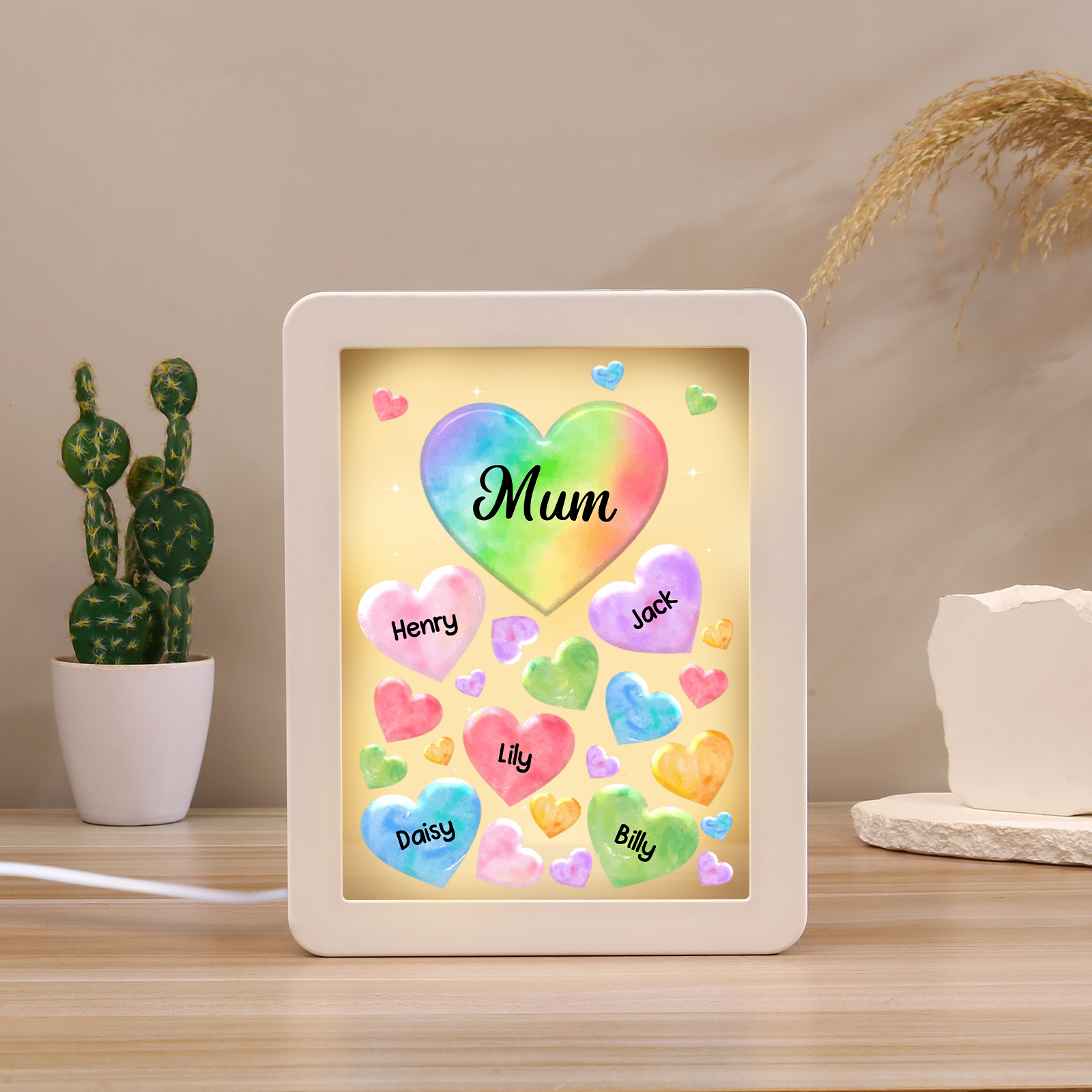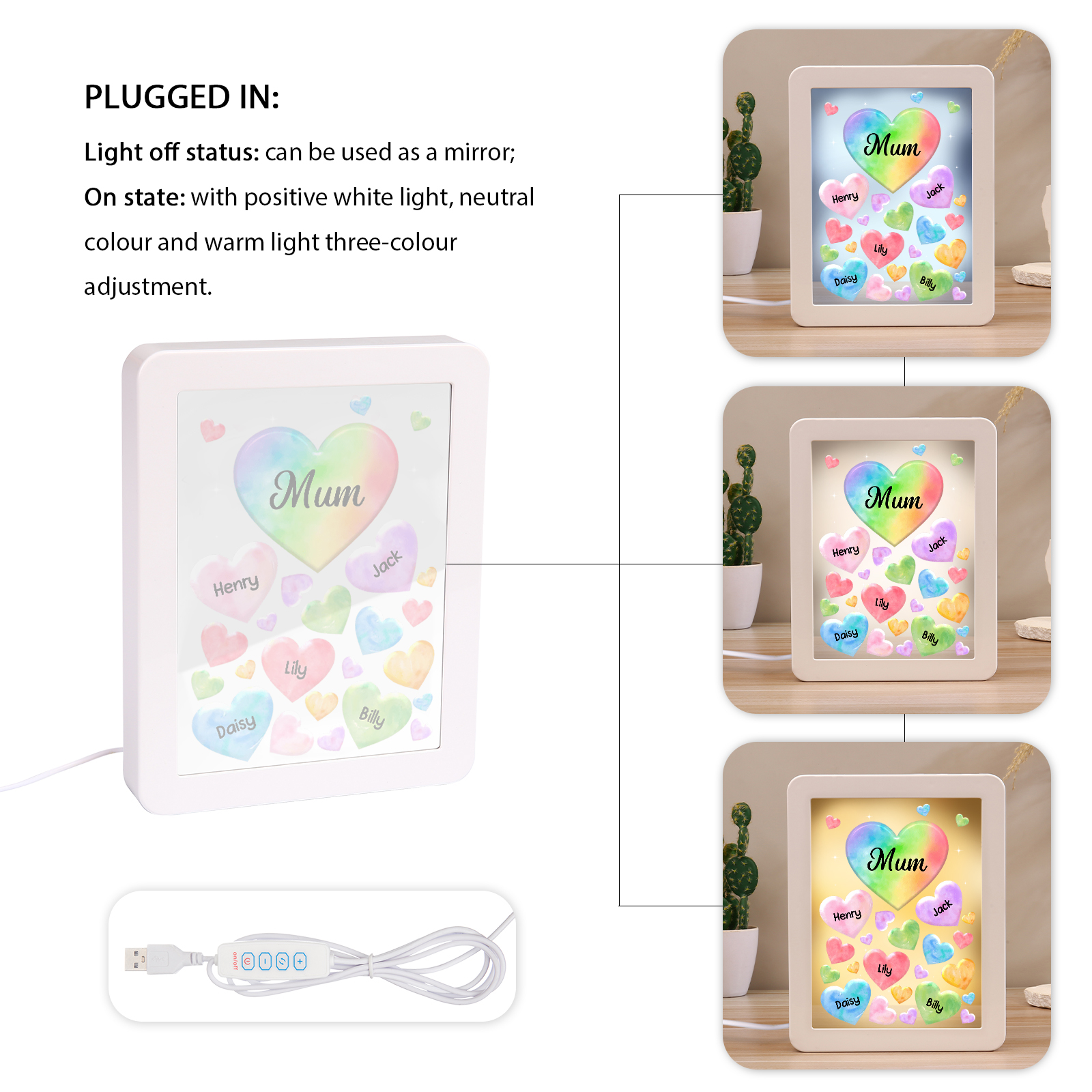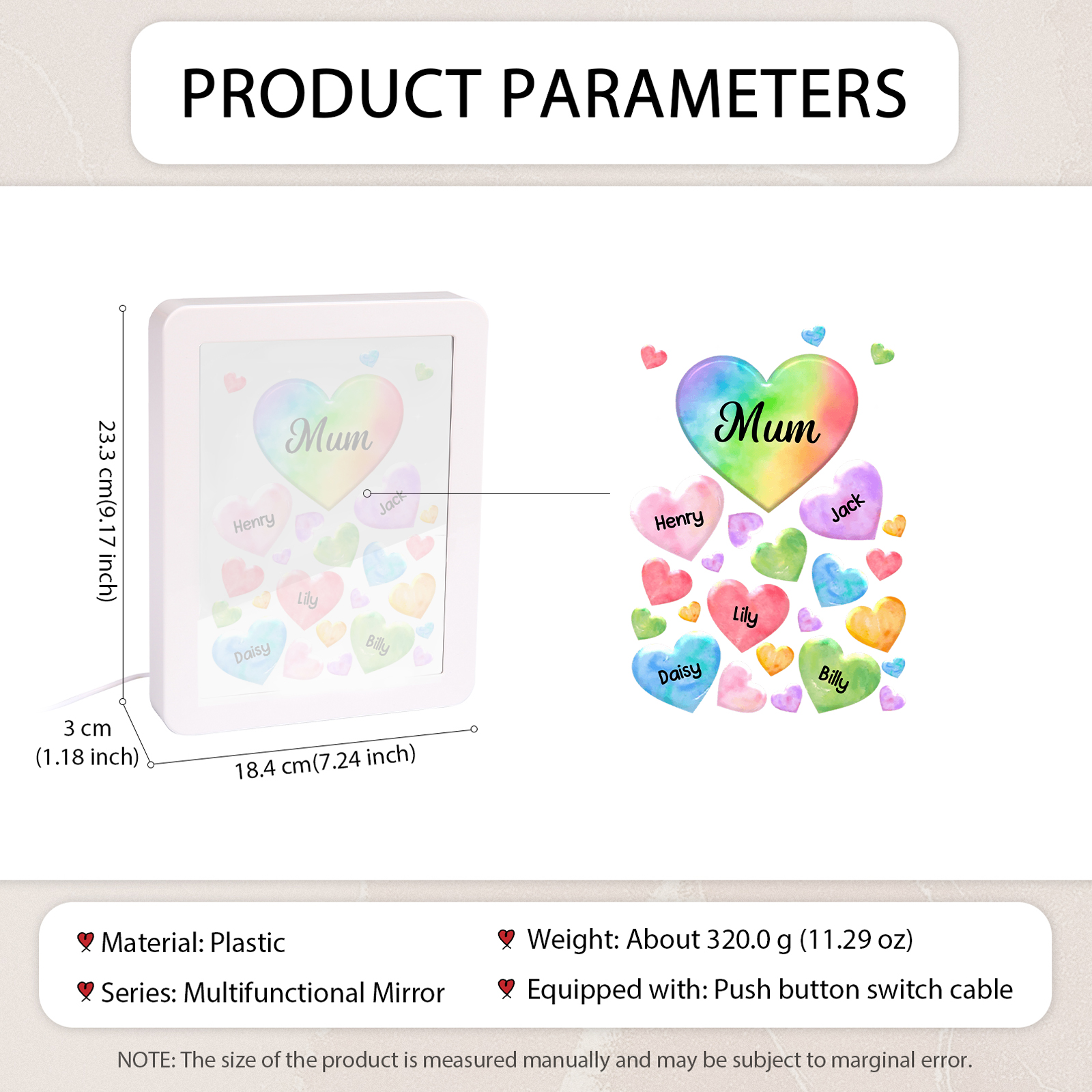 🌟 Our Customizable Colorful Hearts Night Light Mirror Frame is the ultimate choice!