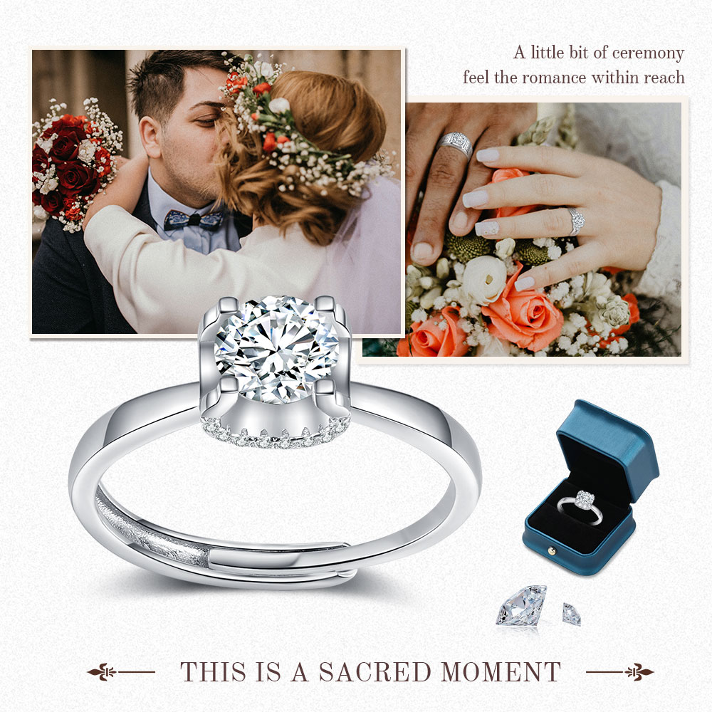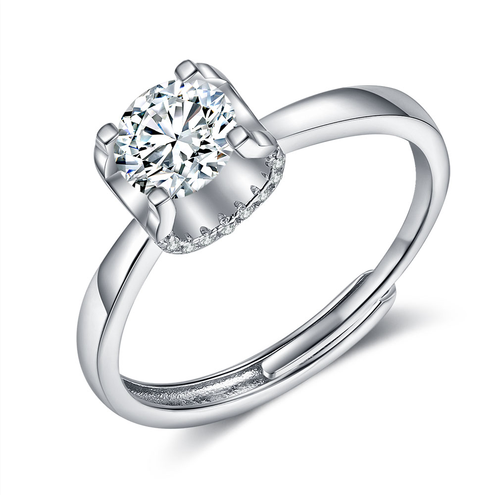 Round Cut Moissanite Diamond Engagement Ring Solitaire Ring Adjustable For Women