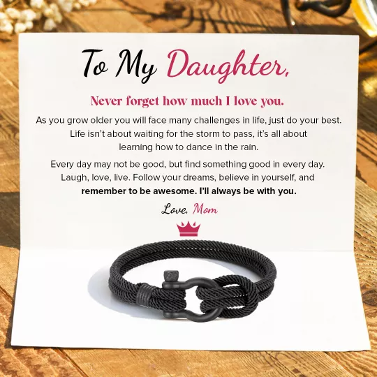 With a beautiful design and inspiring gift card message, this bracelet is a perfect gift for your daughter. This bracelet comes with a knot at its center that symbolizes the infinite connection between a mother and daughter. Gift your son this stunning bracelet and inspire her with the gift card message. Remind her that your heart will always connect no matter the distance.