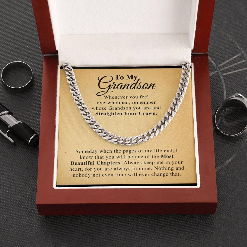 To My Grandson Cuban Chain Necklace Stainless Steel Necklace Warm Gift