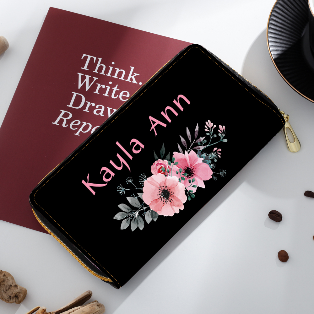 Women Photo Wallet Personalized 4 Pictures Leather Zipper Wallet Mother's Day Gift