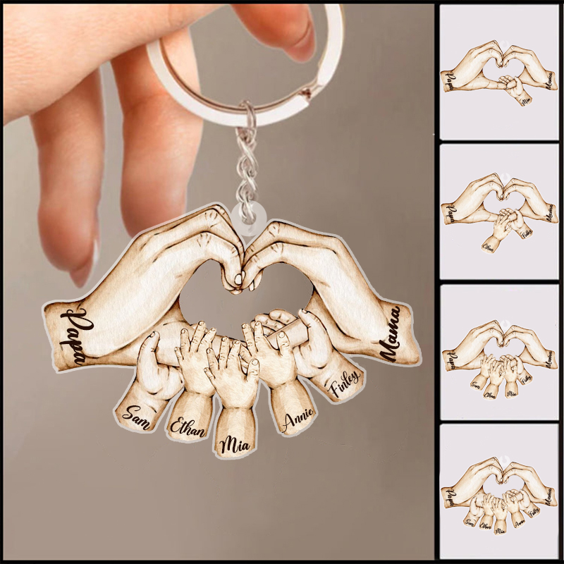 Custom Family Keychain Engrave 7 Names Holding Hands Keychain