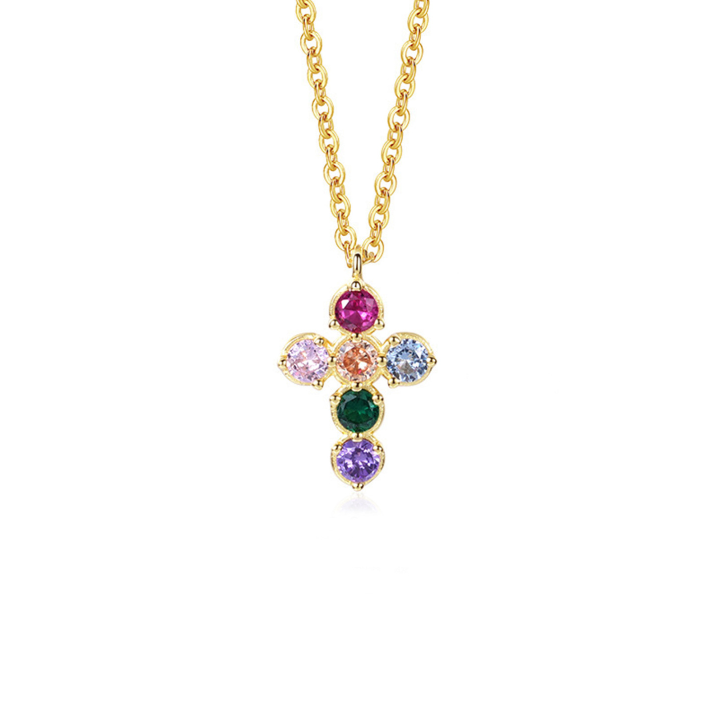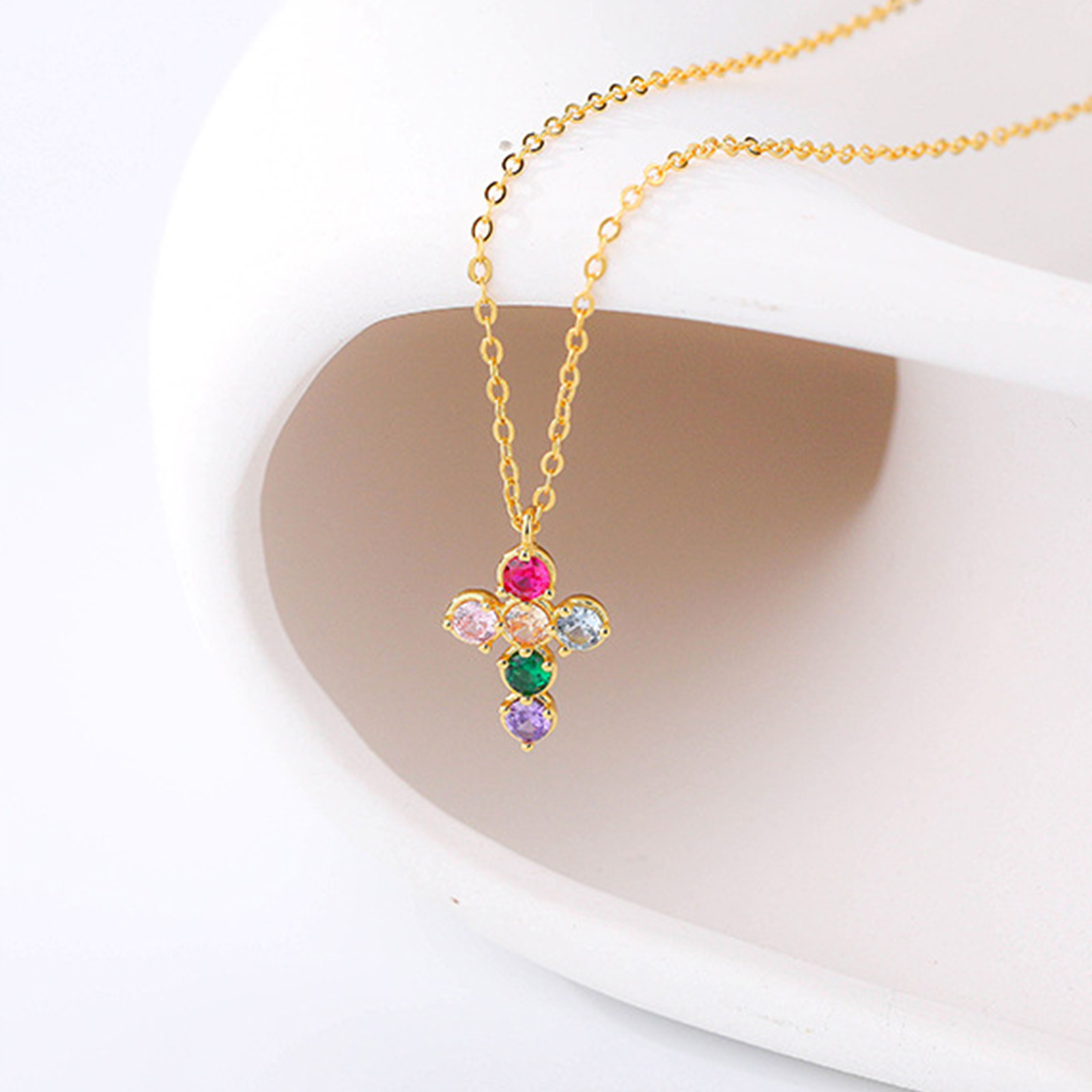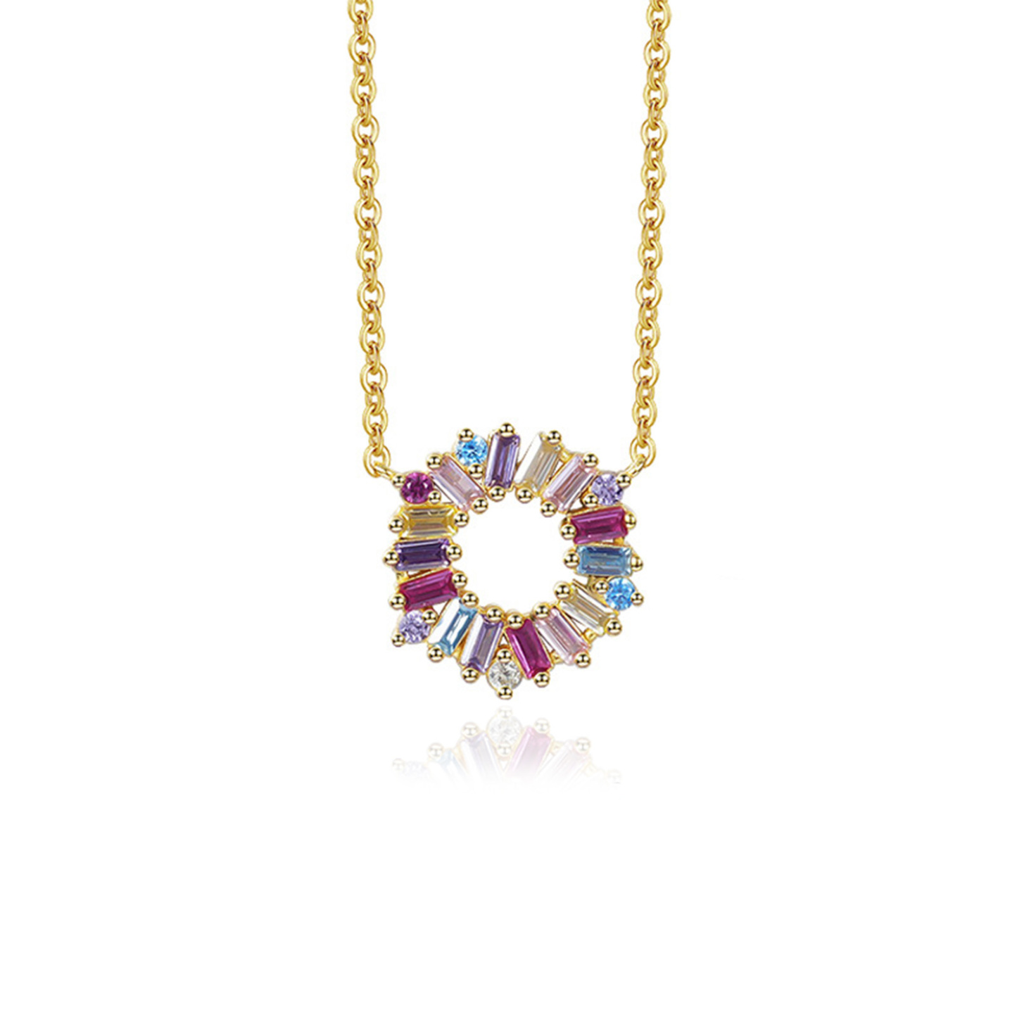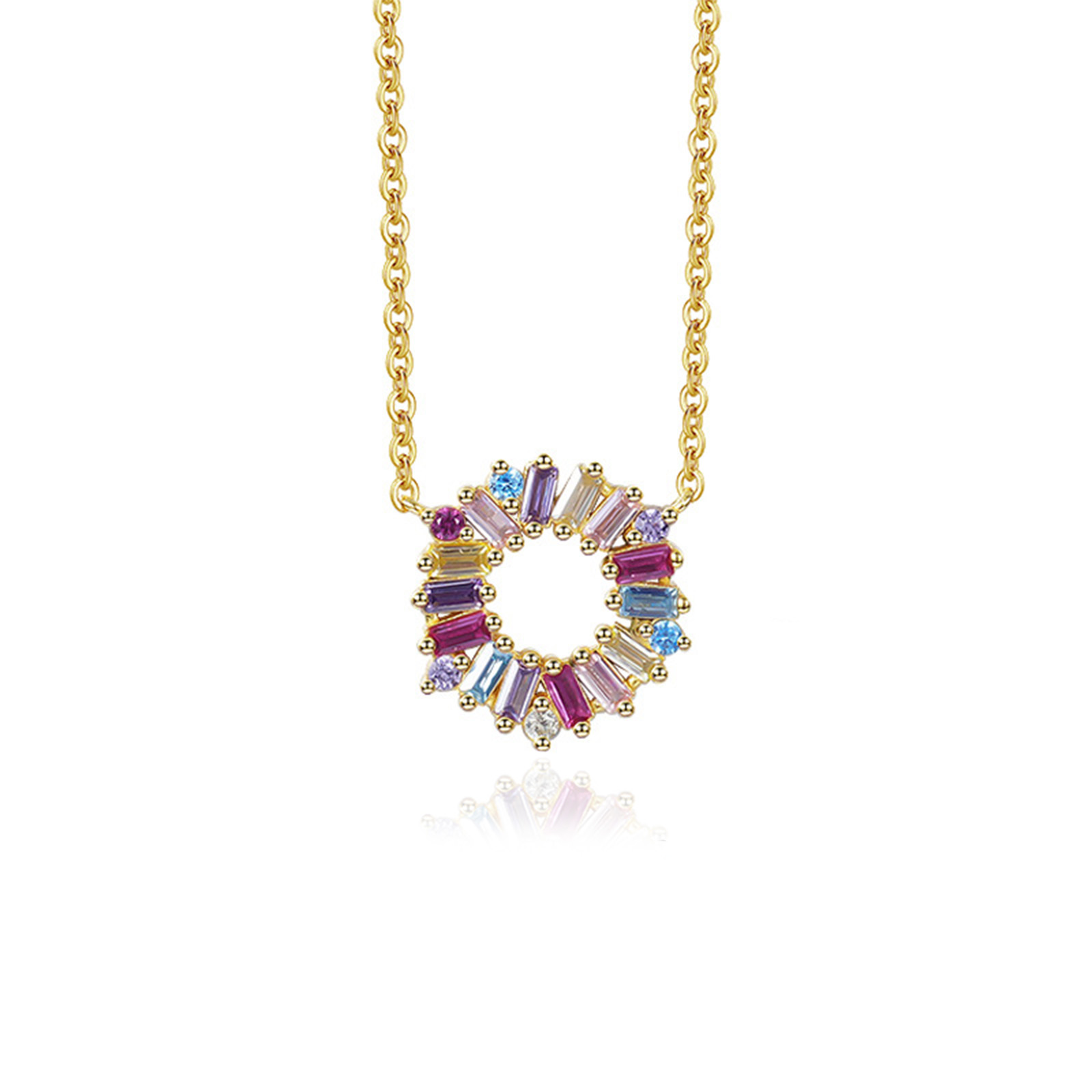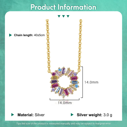 14K Gold Plated 925 Sterling Silver Rainbow Necklace Birthday Gift For Her