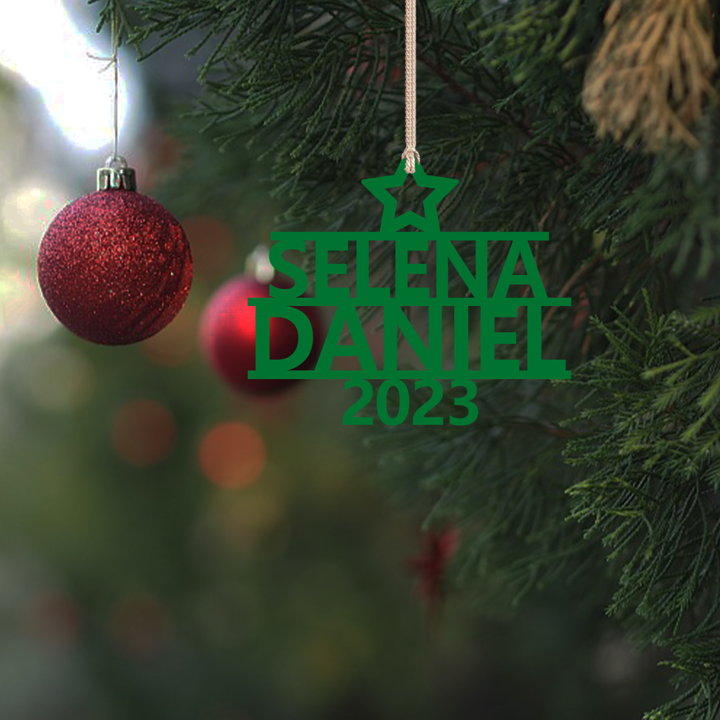 2 Names - Personalized Christmas Tree Ornaments Customized Name Xmas Wooden Decor Gifts for Family Friends