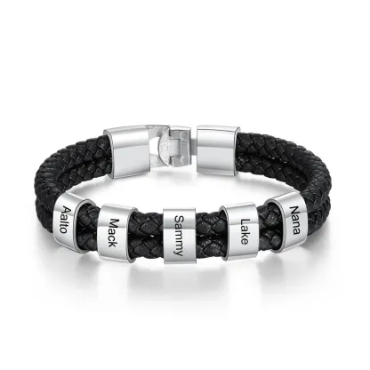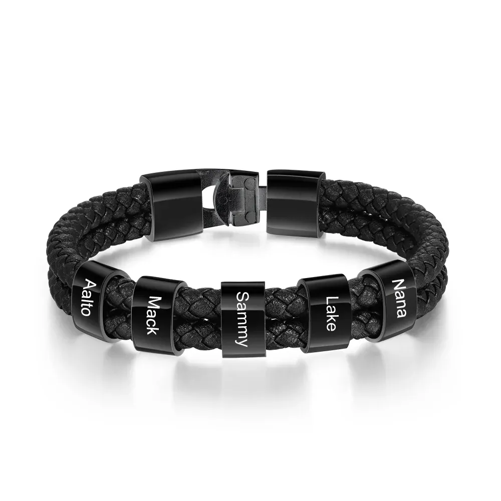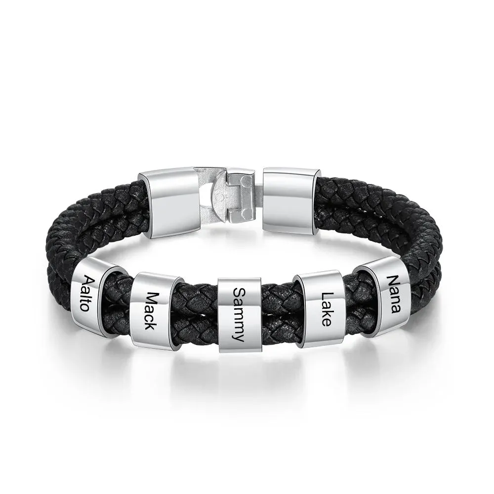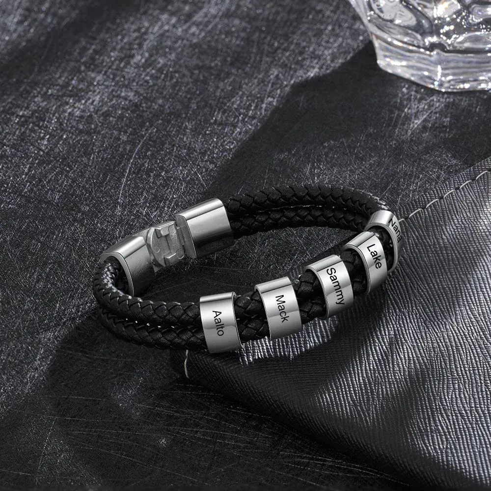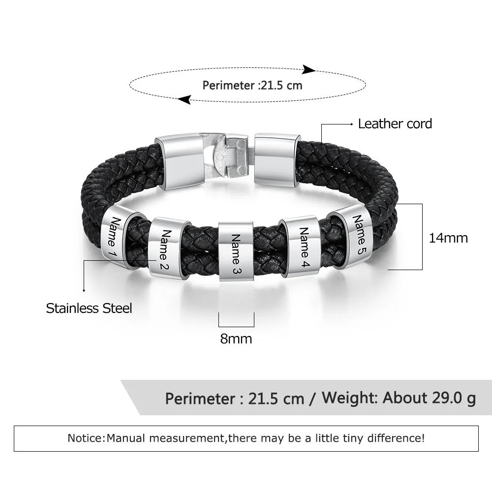 Men Leather Bracelet with 5 Bead Custom Two Layers Bracelet Black Gift To My Man