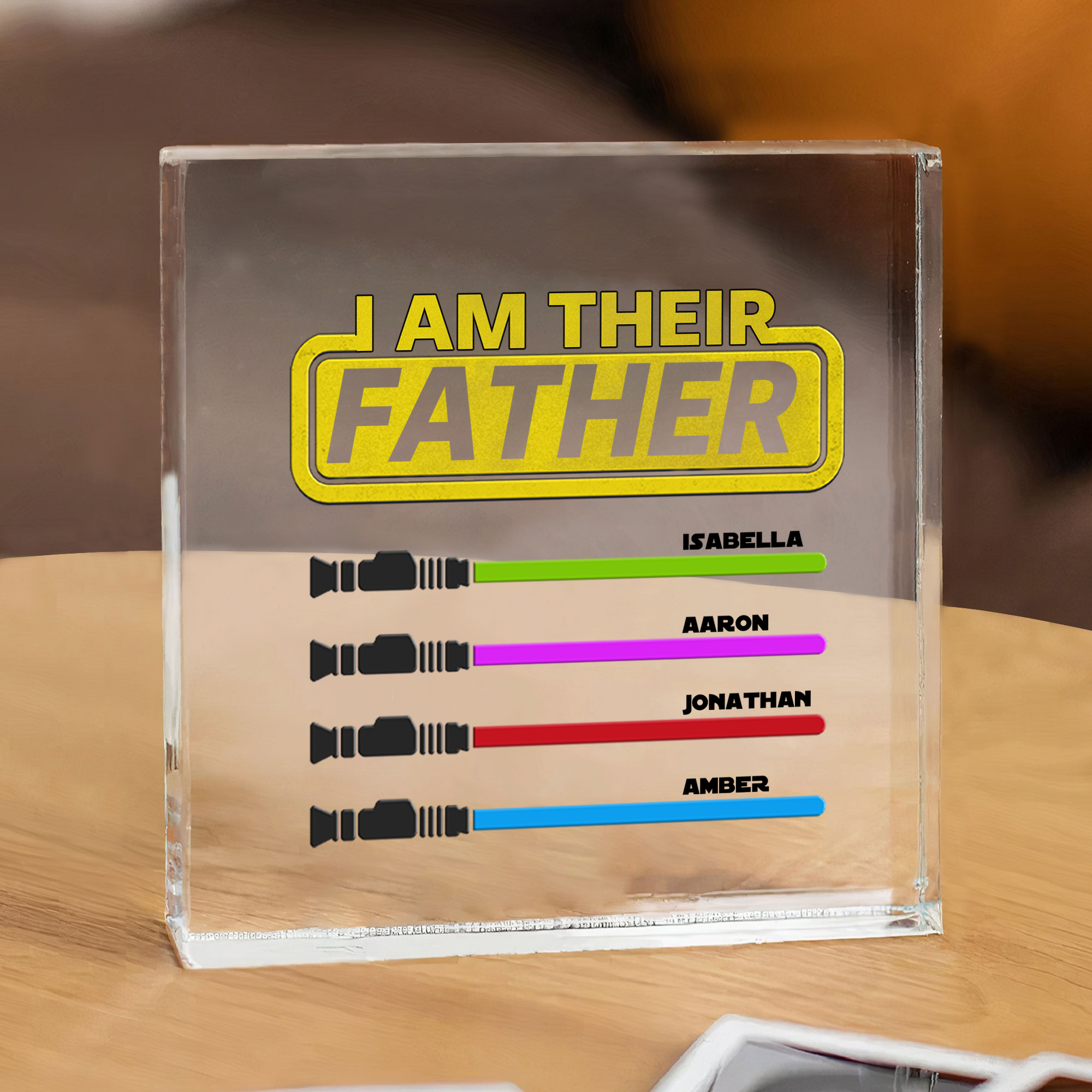 Personalized 4 Names Acrylic Square Keepsake Rectangle Plaque Father's Day Gifts - I Am Their Father