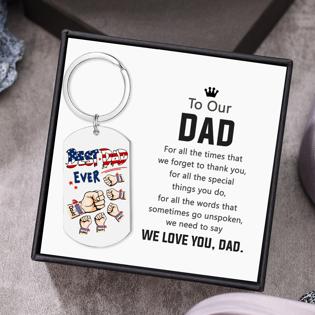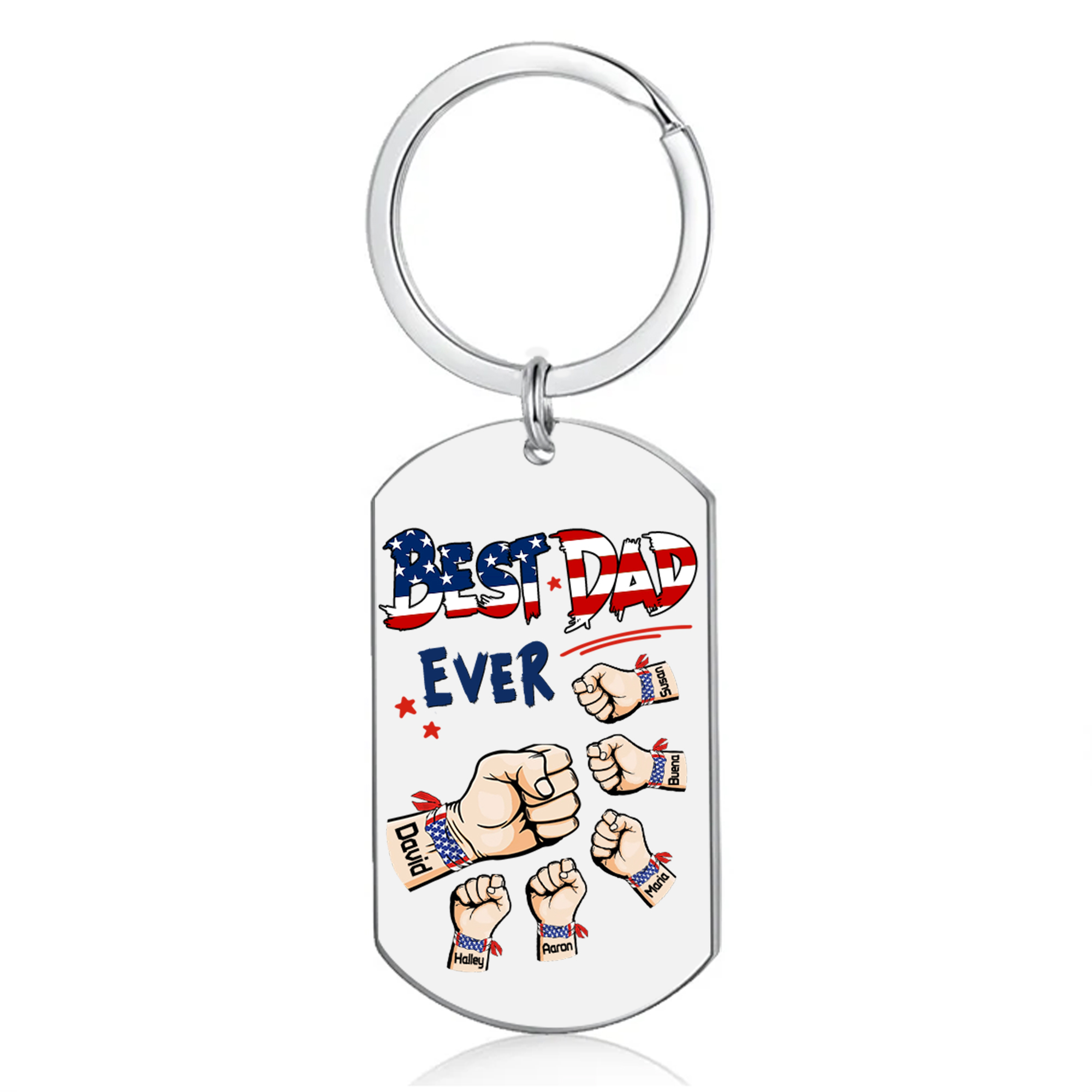 Personalized 6 Names American Flag Keychain Fist Bump Keychain Father Gifts - Best Dad Ever