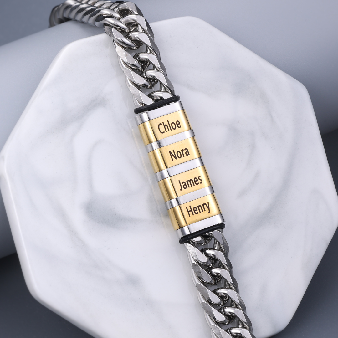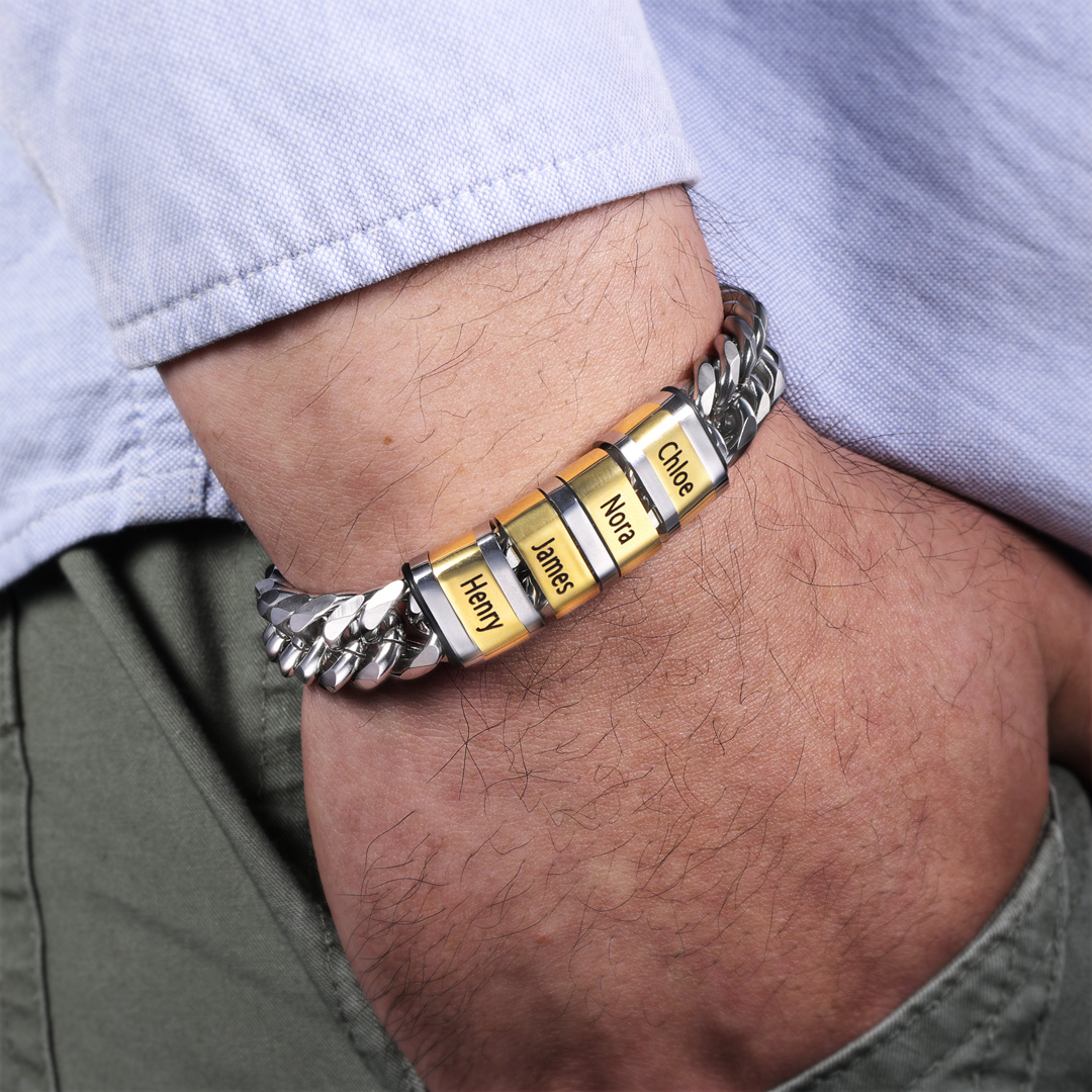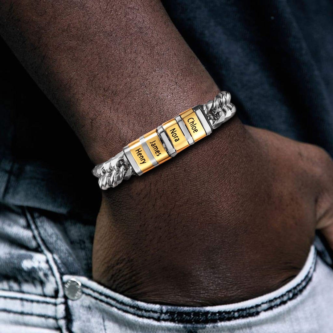 Personalized Cuban Chain Bracelet Custom 2 Names Beads Men's Bracelet