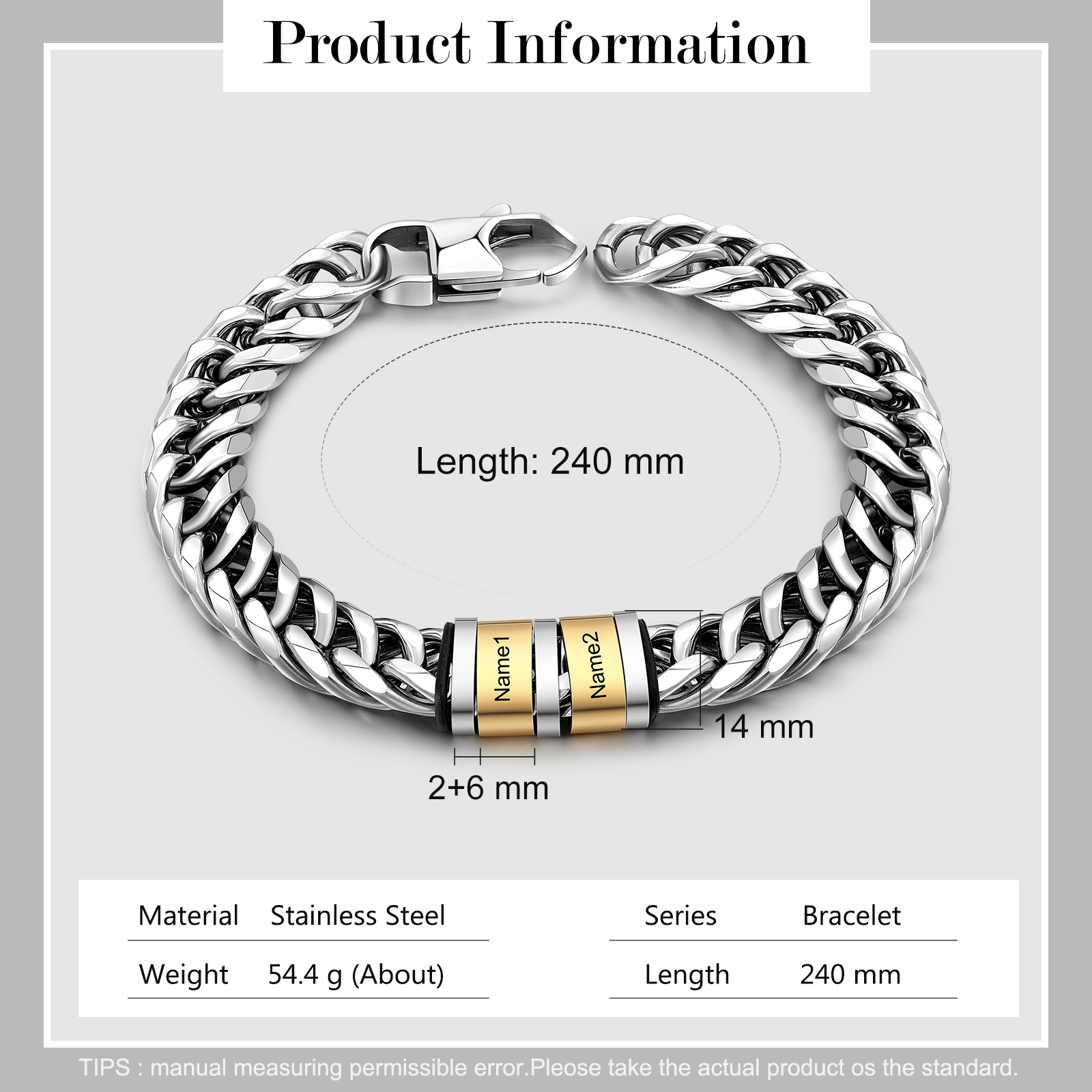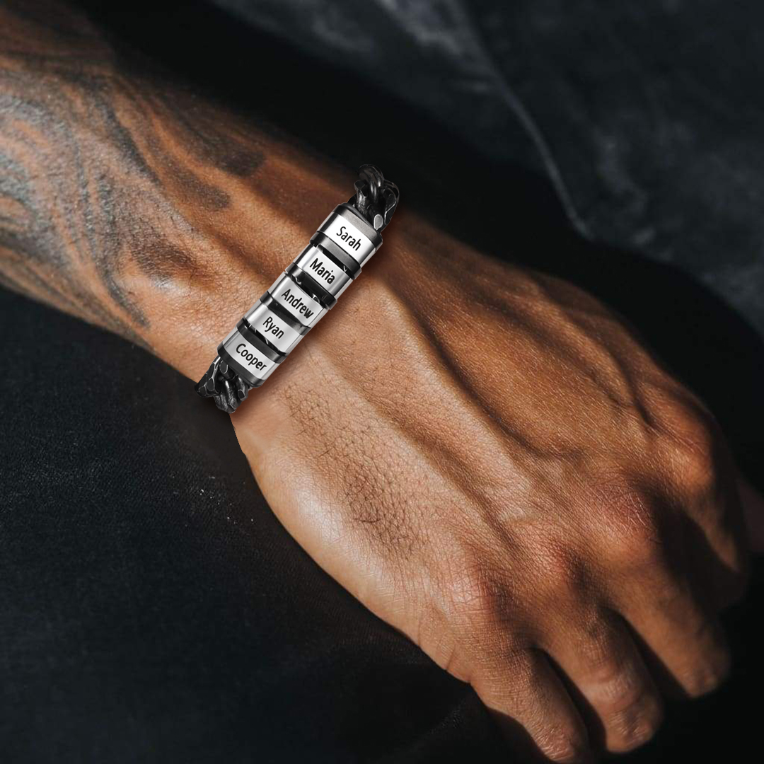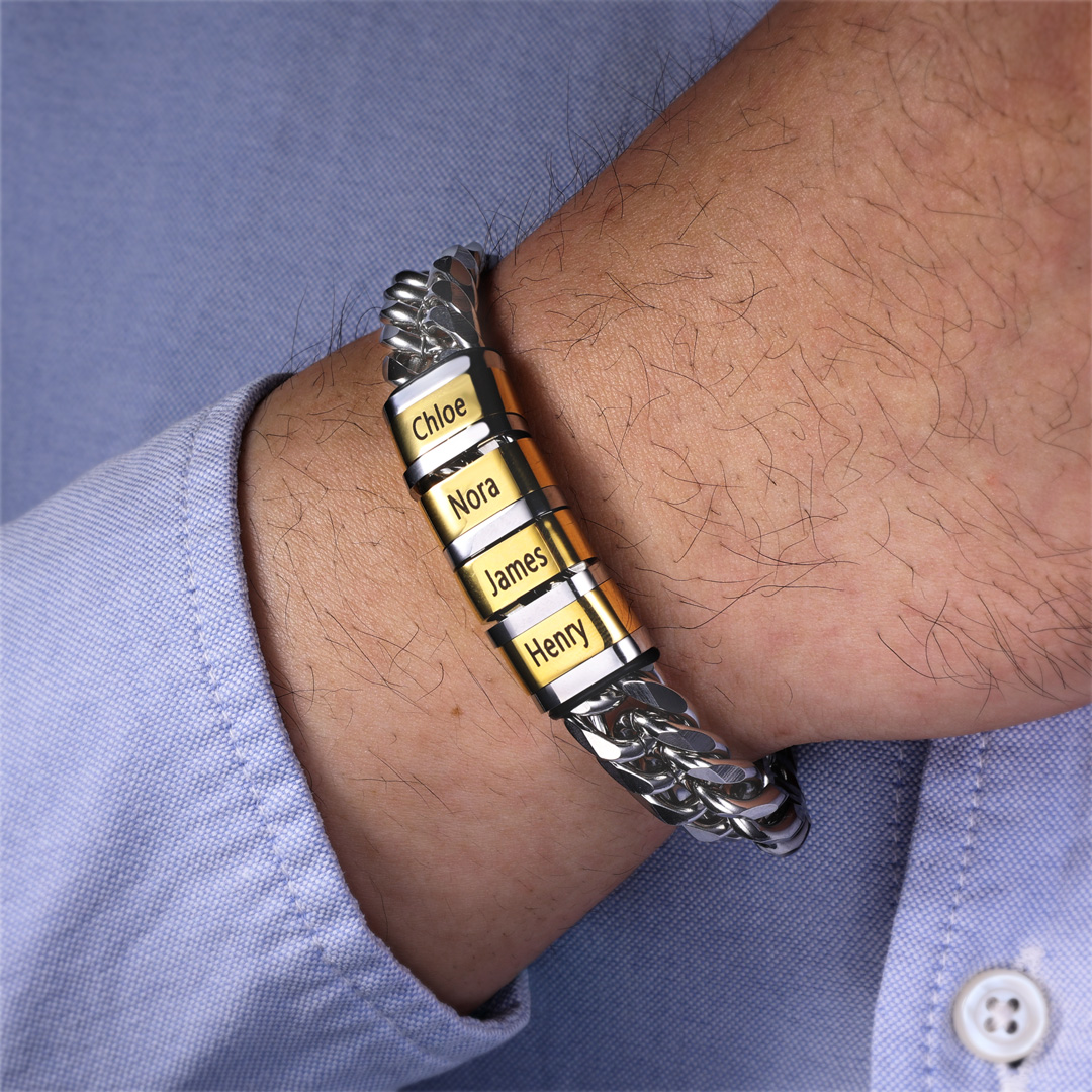 Personalized Cuban Chain Bracelet Custom 2 Names Beads Men's Bracelet