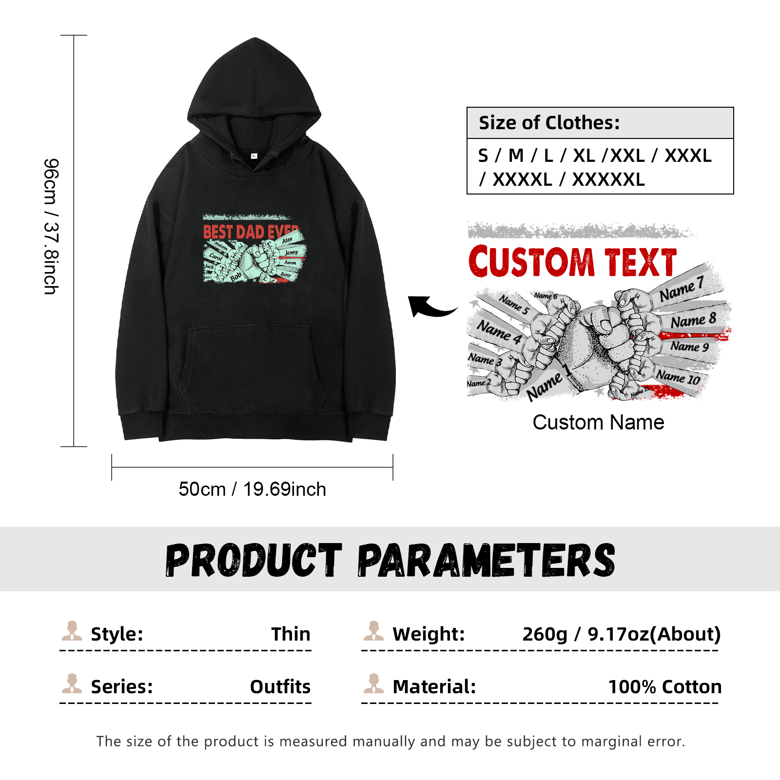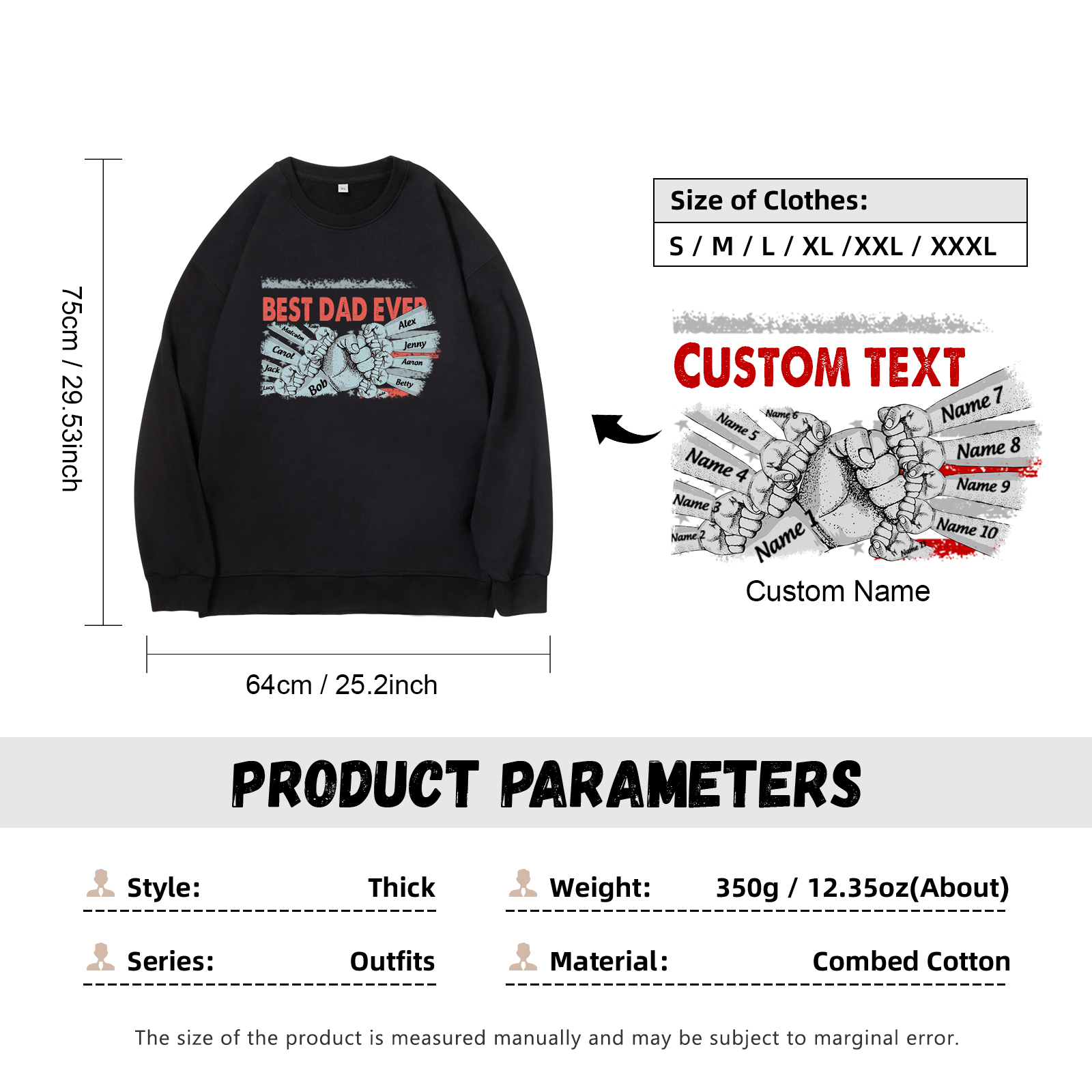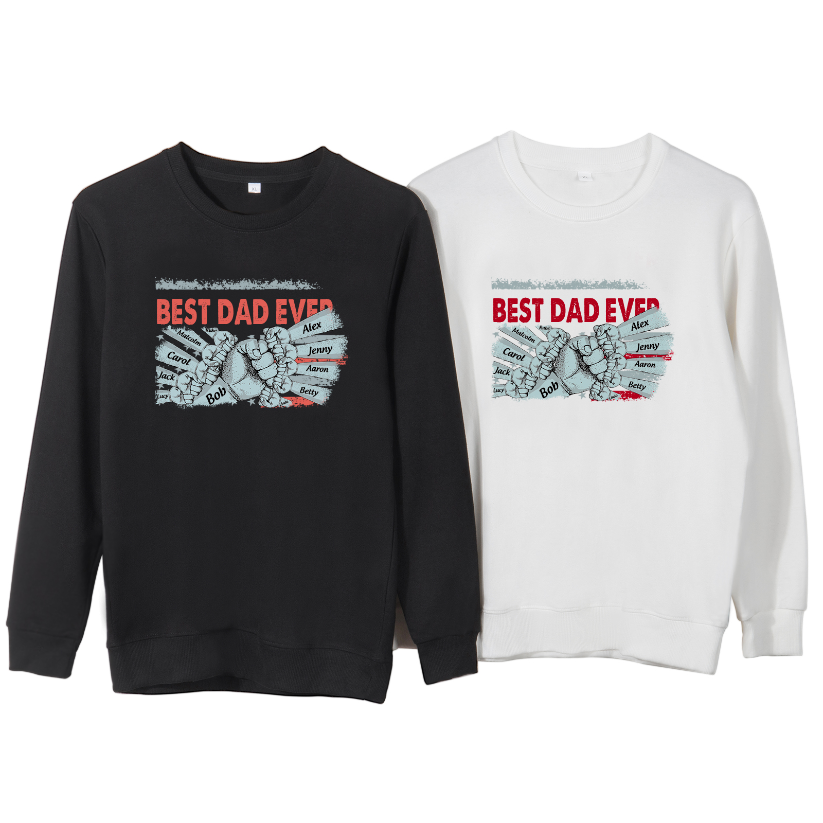 Personalized Hoodie Crewneck Sweatshirt Custom 11 Names Clothes Black White Hoodie Fist Signs Gift for Dad Grandpa