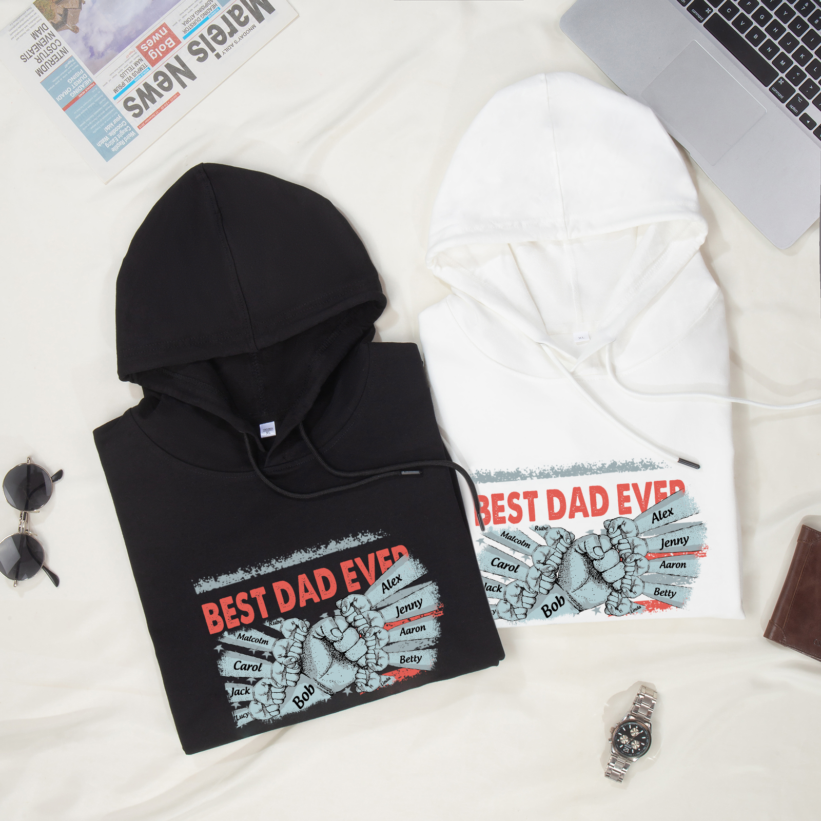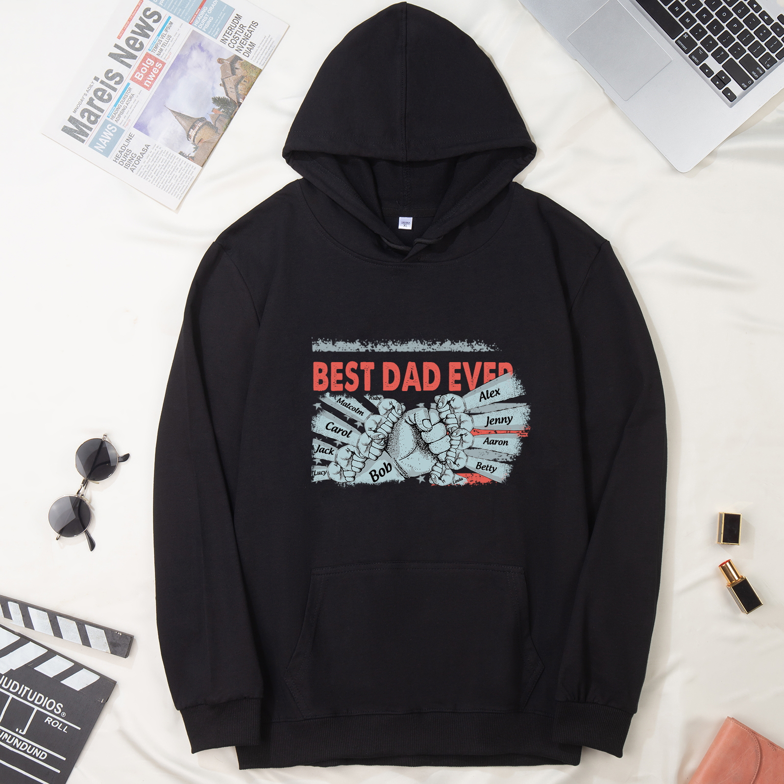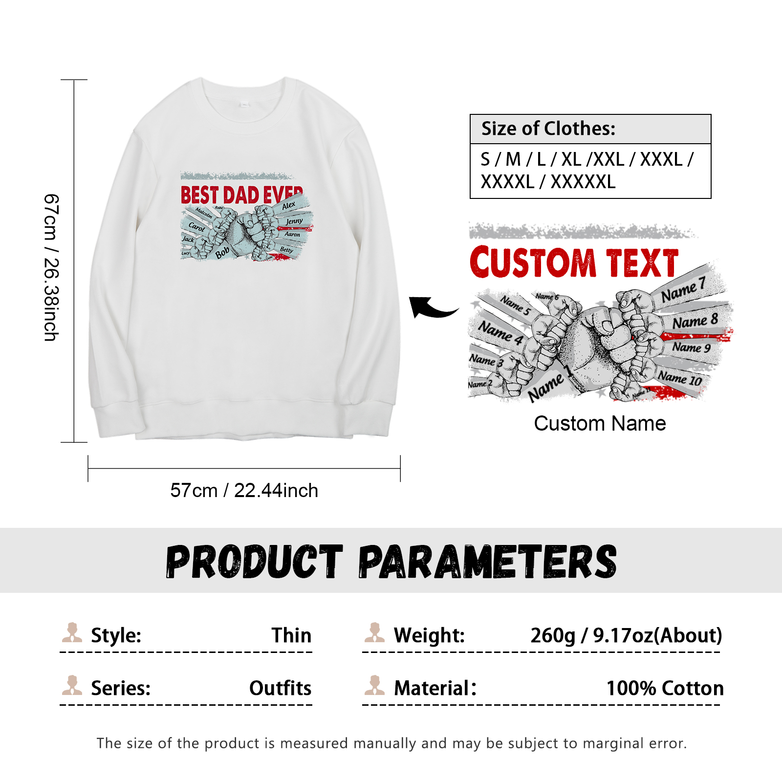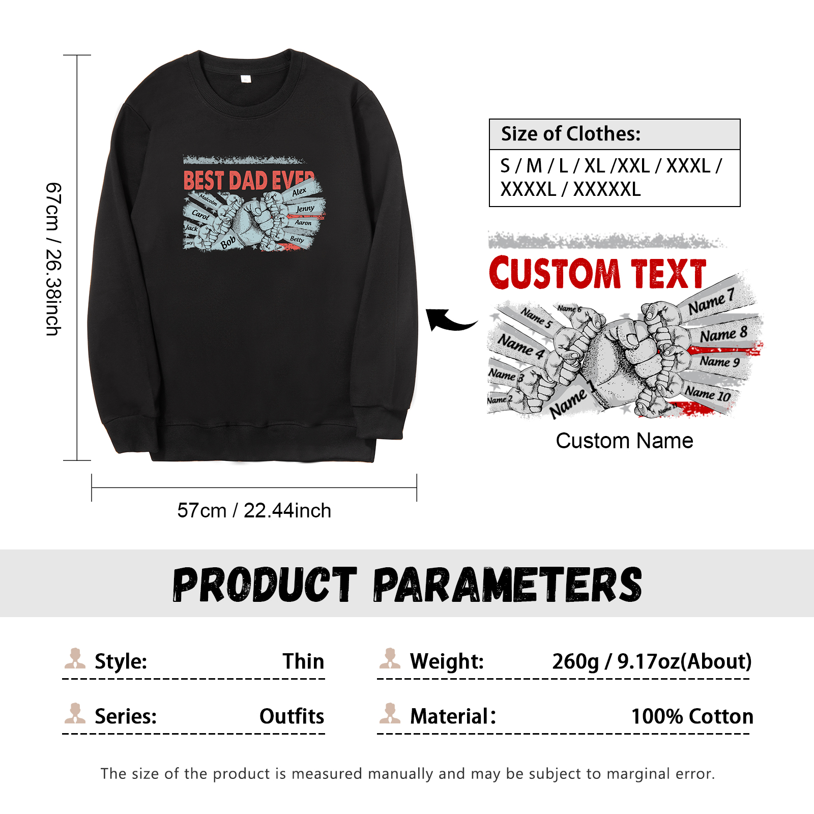 Personalized Hoodie Crewneck Sweatshirt Custom 11 Names Clothes Black White Hoodie Fist Signs Gift for Dad Grandpa