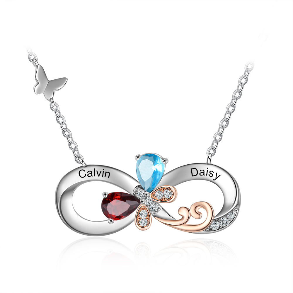Personalized Infinity Butterfly Necklace Custom 2 Birthstones Necklace for Her