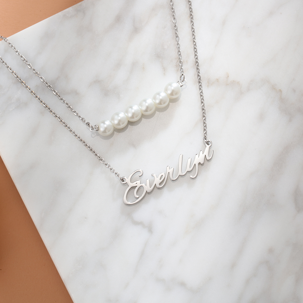Personalized Name Necklace with Pearls Double Layer Necklace