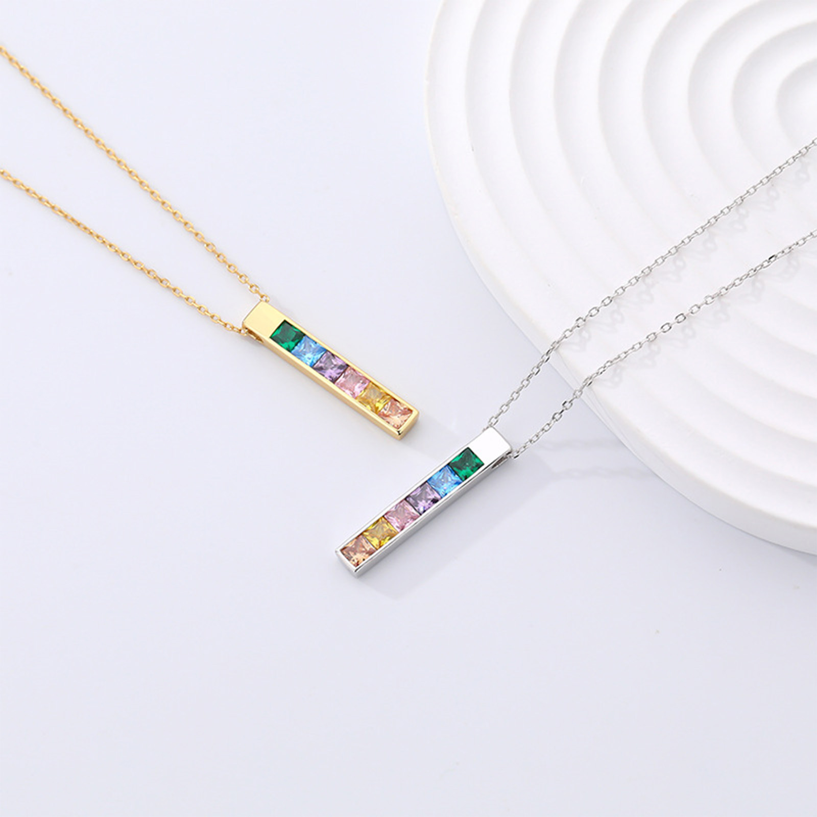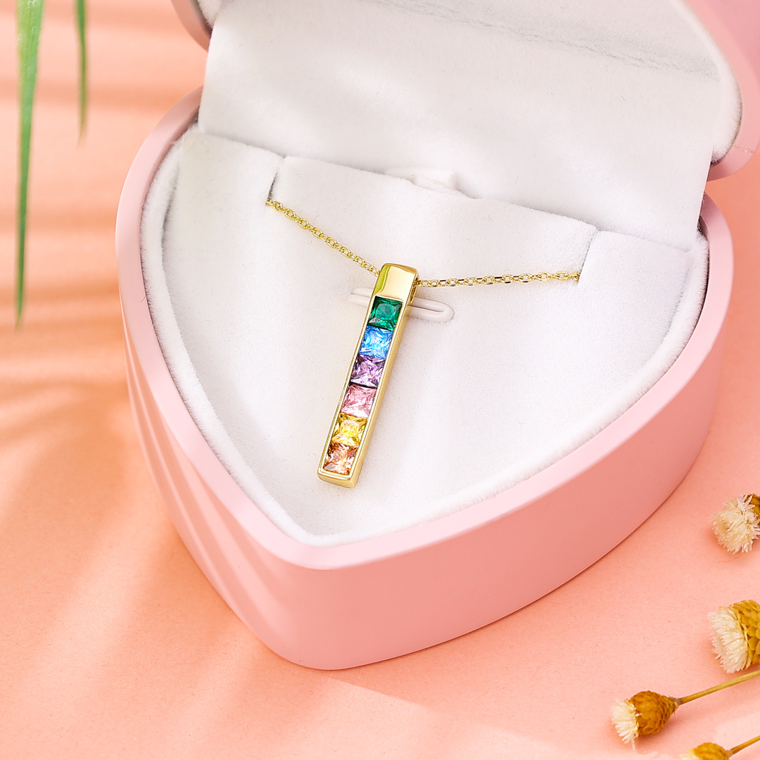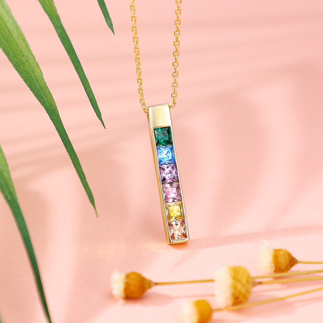 S925 Sterling Silver Necklace Birthstones Bar Necklace Birthday Gift For Her