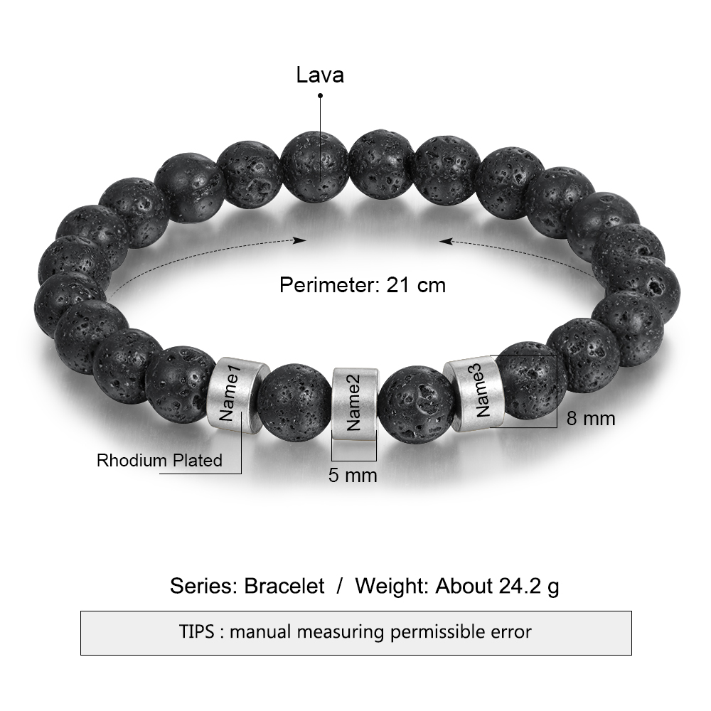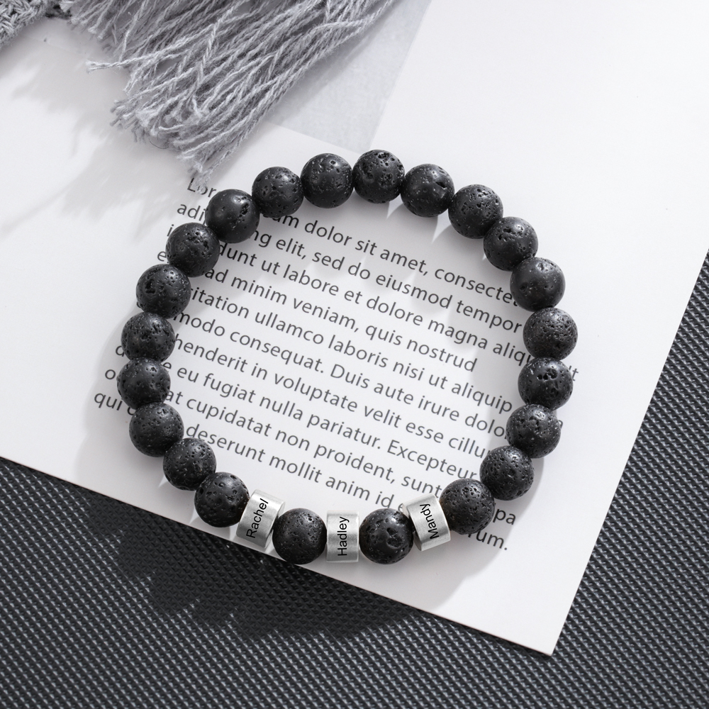 Serene Black Onyx Men Bracelet Personalized 3 Names Beaded Warp Bracelet Gift For Dad