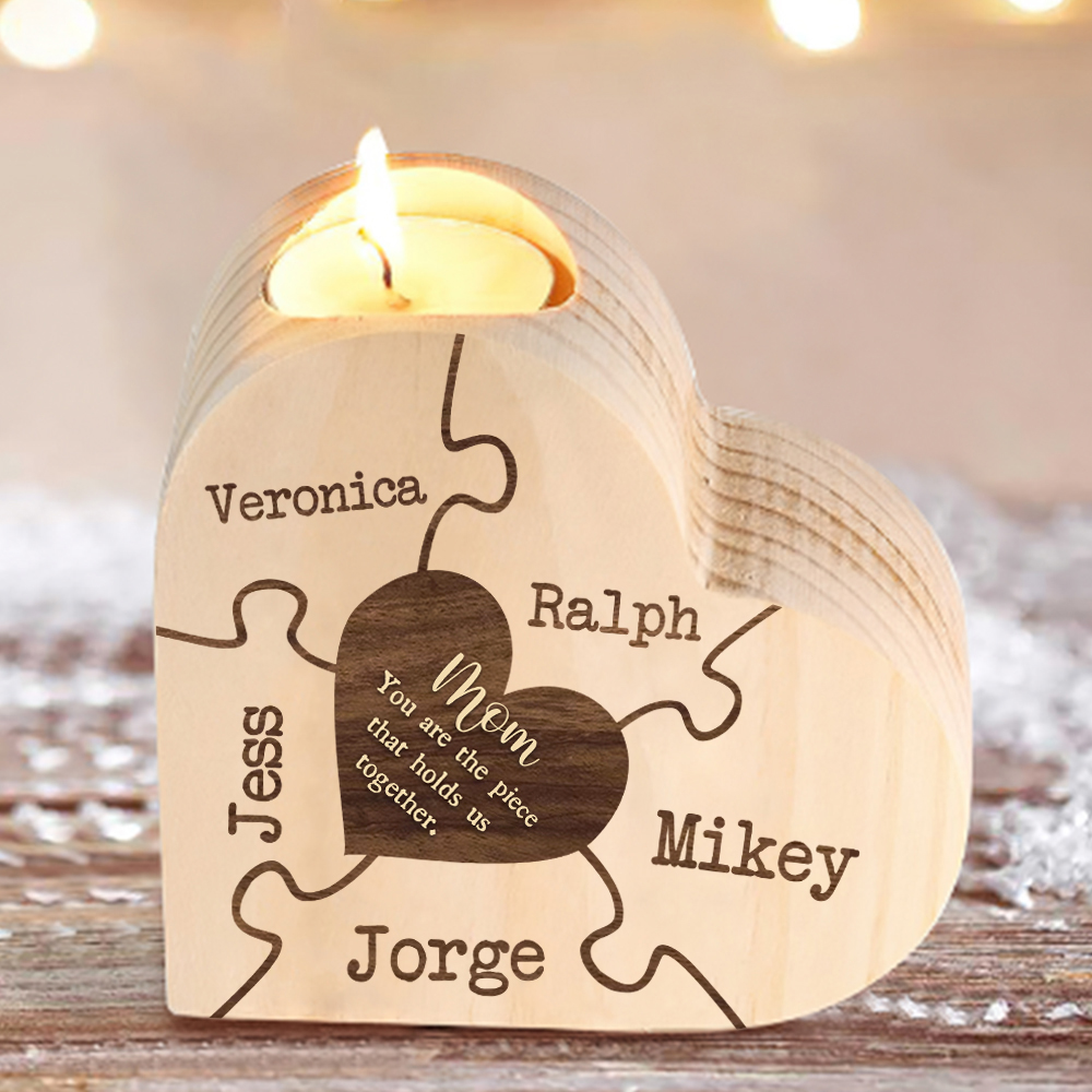 To My Mom Personalized 2 Names Puzzle Candle Candle Holder Wooden Candlestick "You are the piece that holds us together"