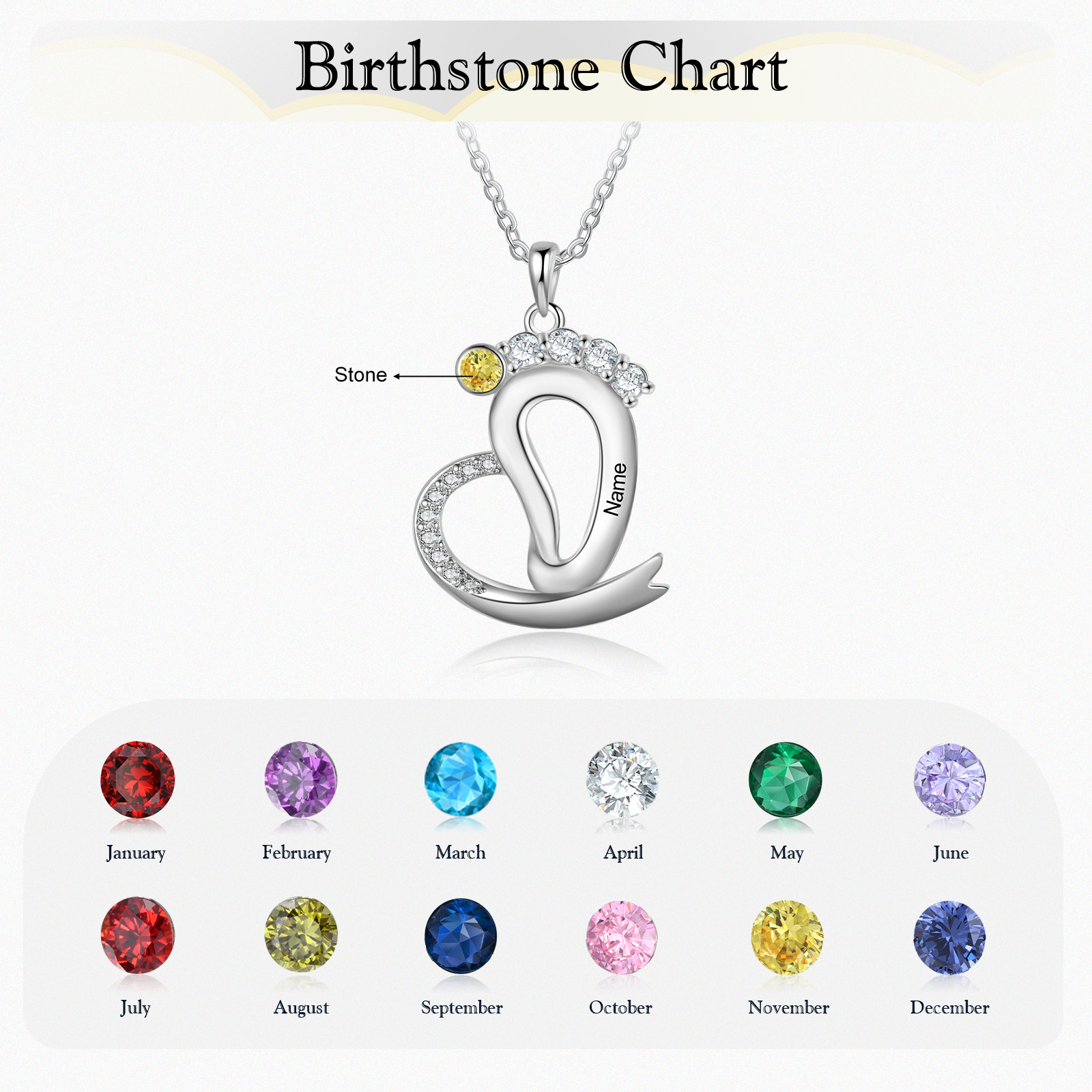 Heart Shape Baby Feet Necklace Personalized 1 Birthstone and Name Gift for Mom