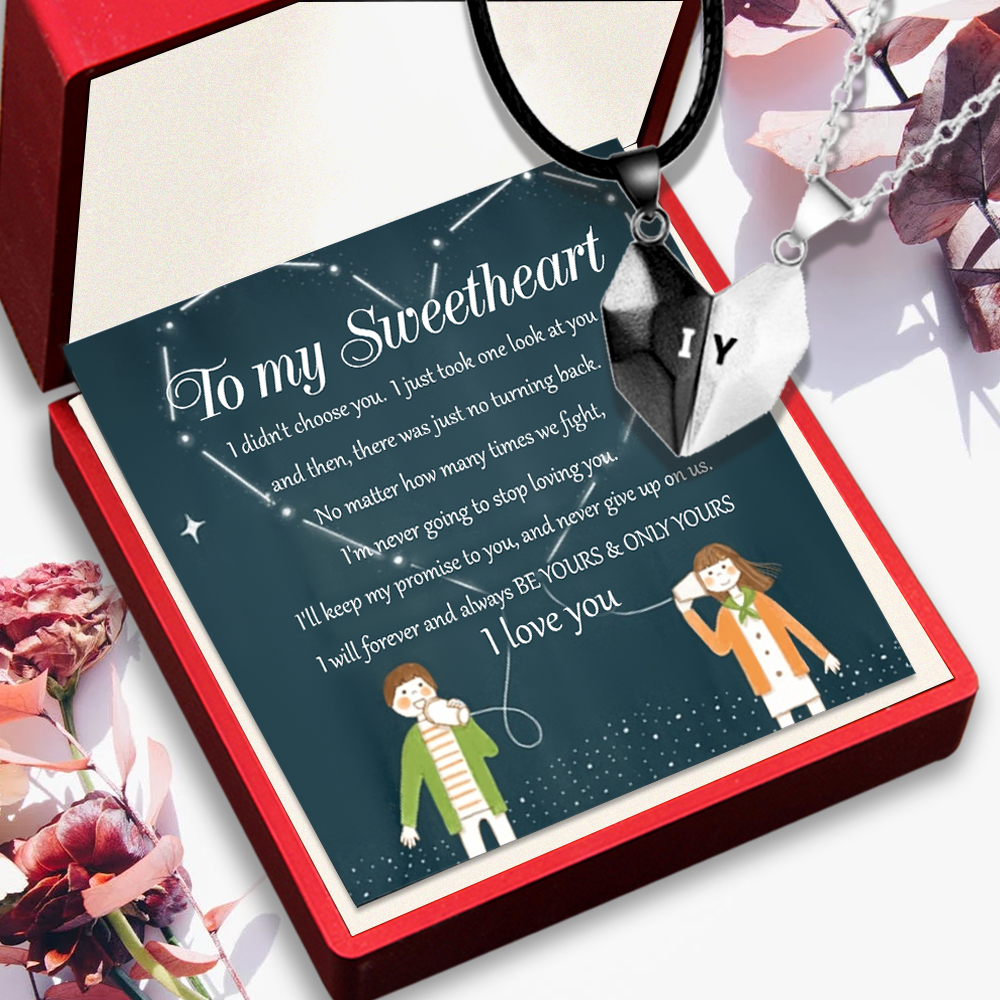 To My Sweetheart Magnetic Heart Necklace Custom Initial Two Souls One Heart Necklace