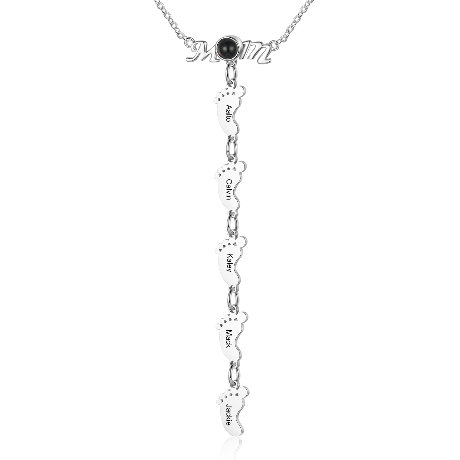 Mother Baby Feet Projection Necklace Engrave 5 Names Personalized Photo Necklace Creative Gifts