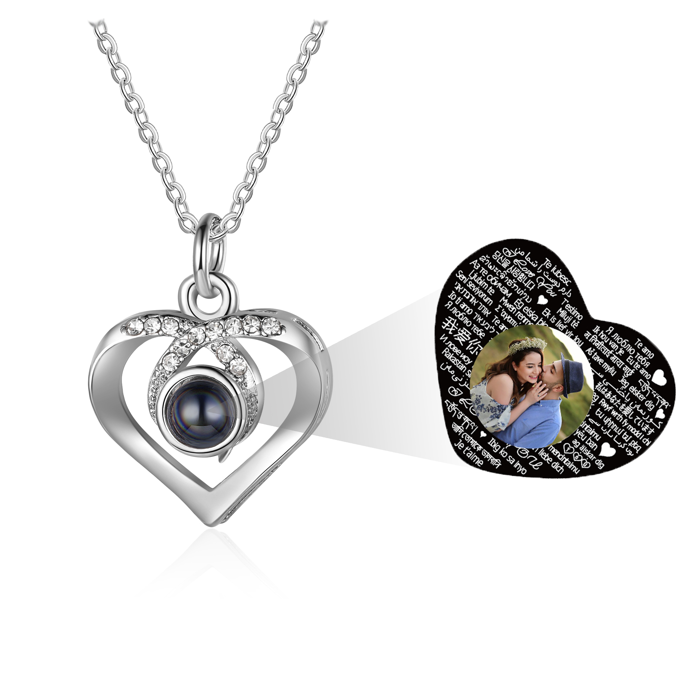 Personalized Projection Necklace Photo Jewelry- I Love You in 100 Languages