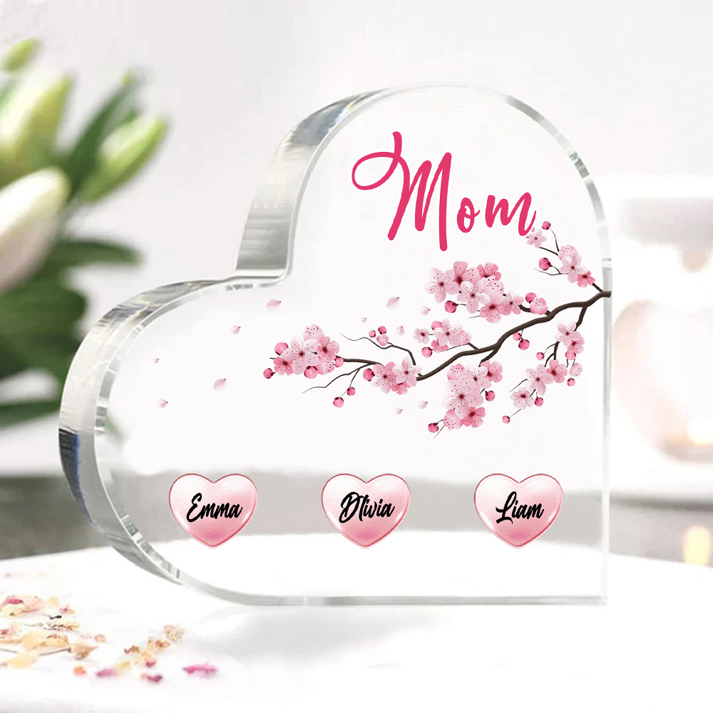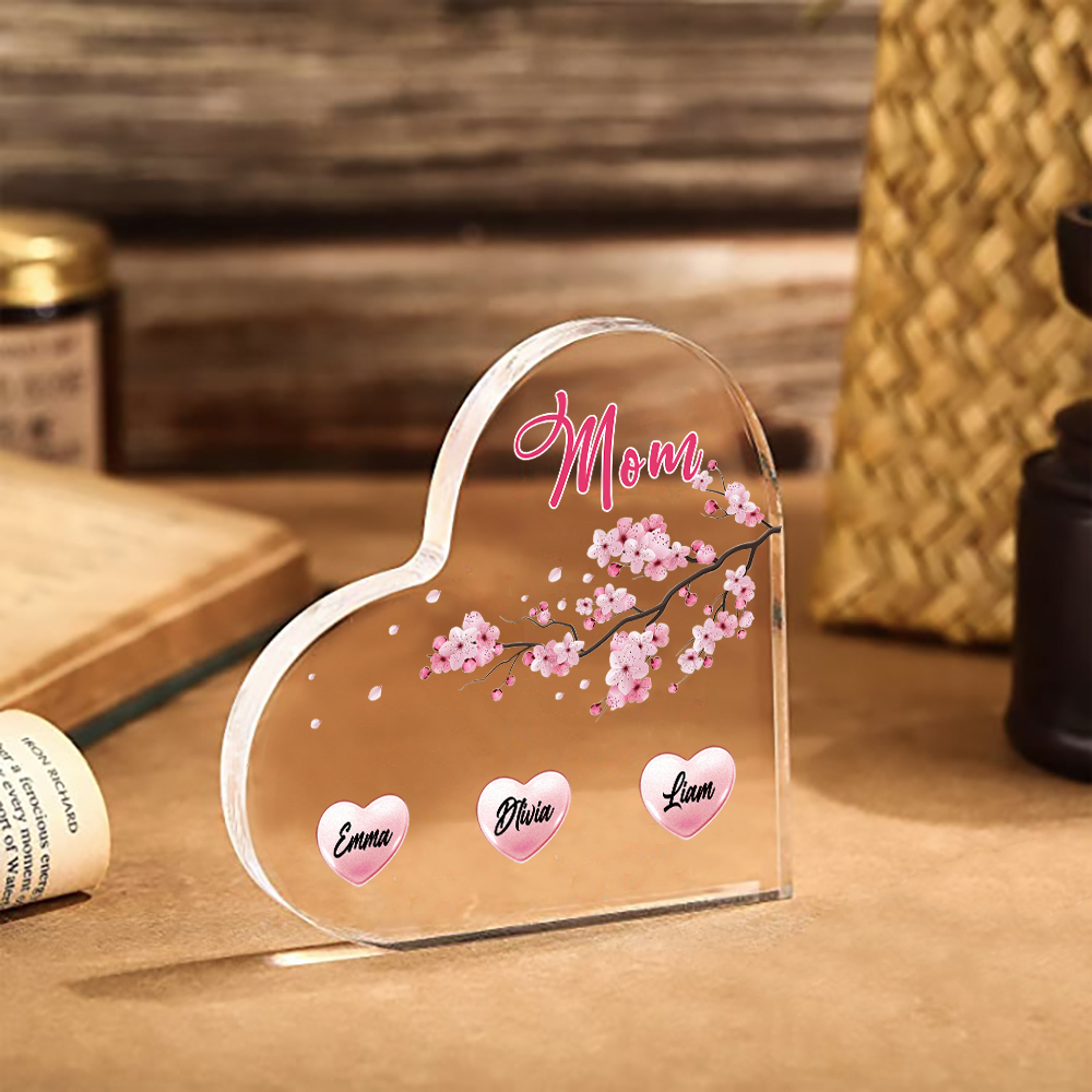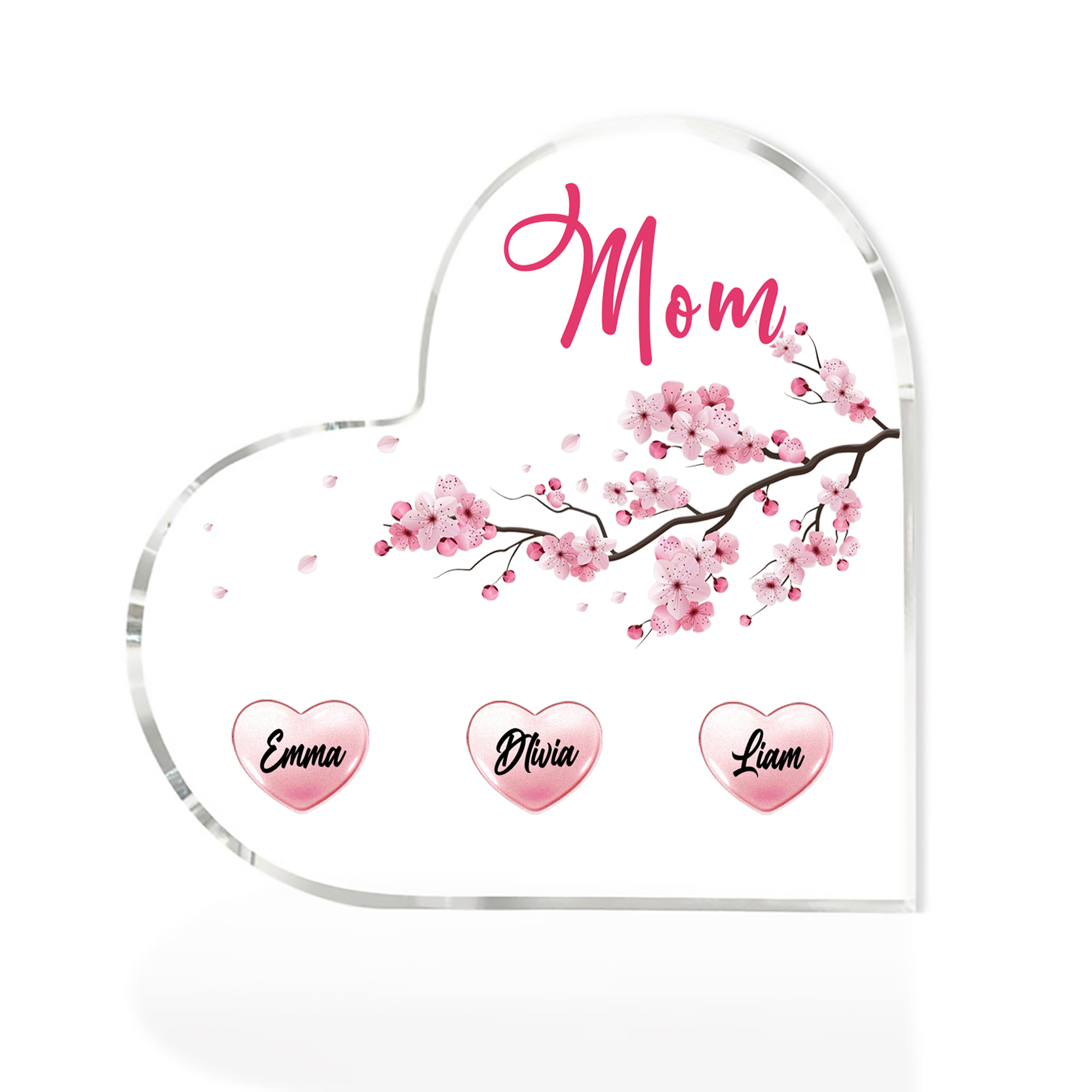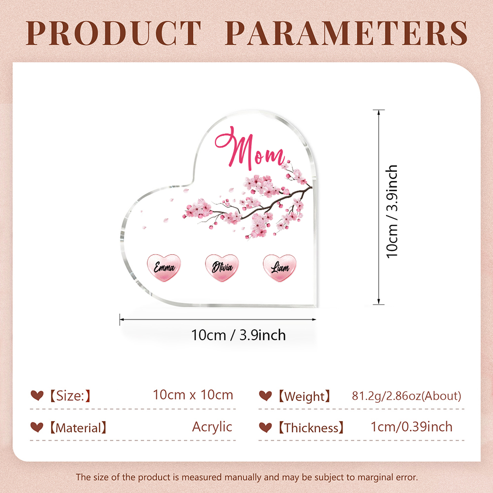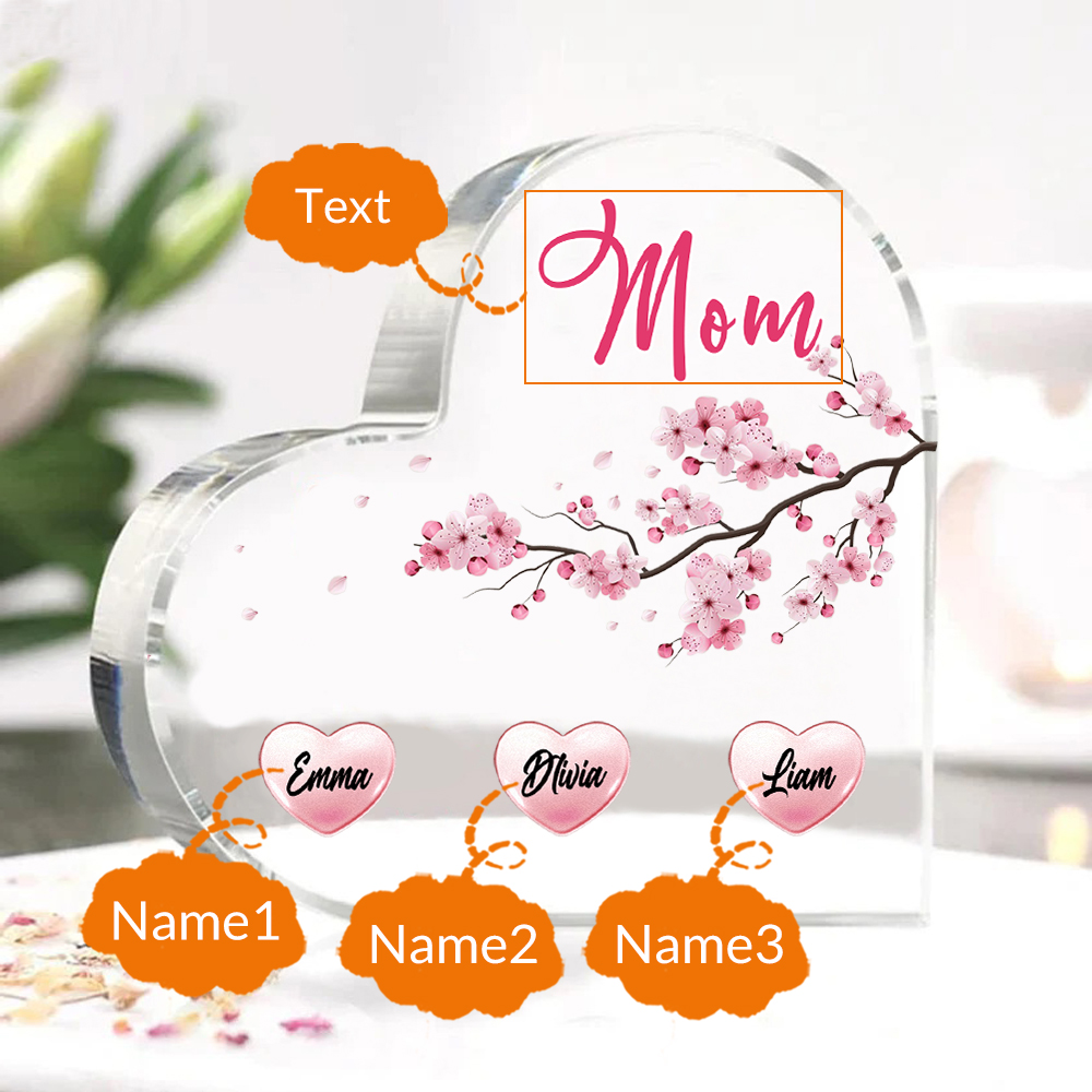 3 Names - Personalized Acrylic Heart Keepsake Custom Text Peach Blossom Ornaments Gifts for Grandma/Mother