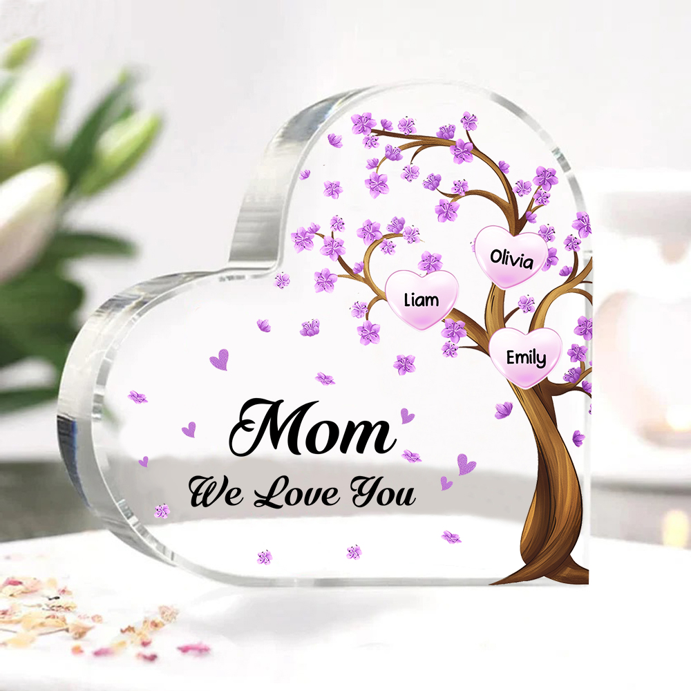 3 Names - Personalized Acrylic Heart Keepsake Custom Text Purple Flowers Tree Ornaments Gifts for Grandma/Mother