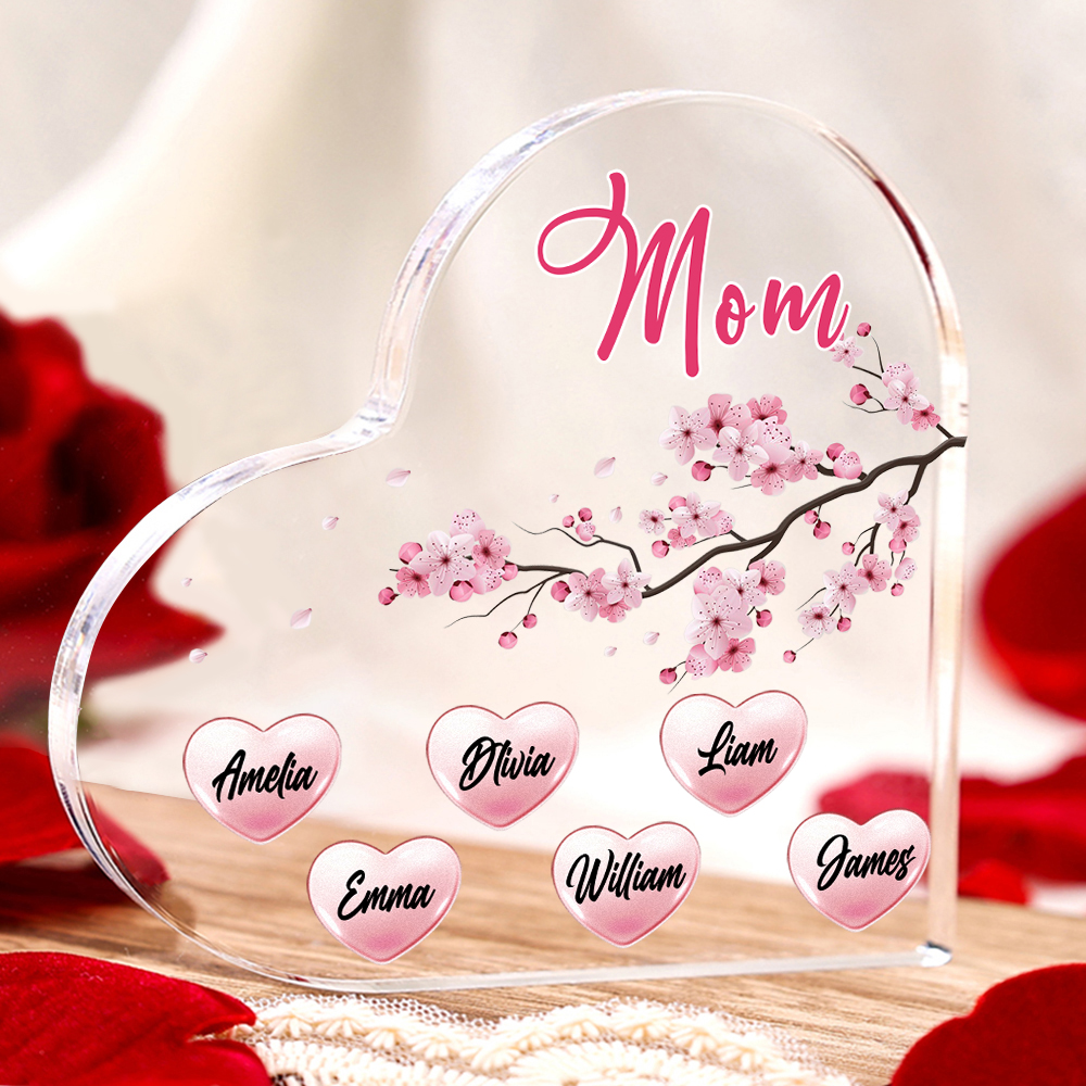 6 Names - Personalized Acrylic Heart Keepsake Custom Text Peach Blossom Ornaments Gifts for Grandma/Mother