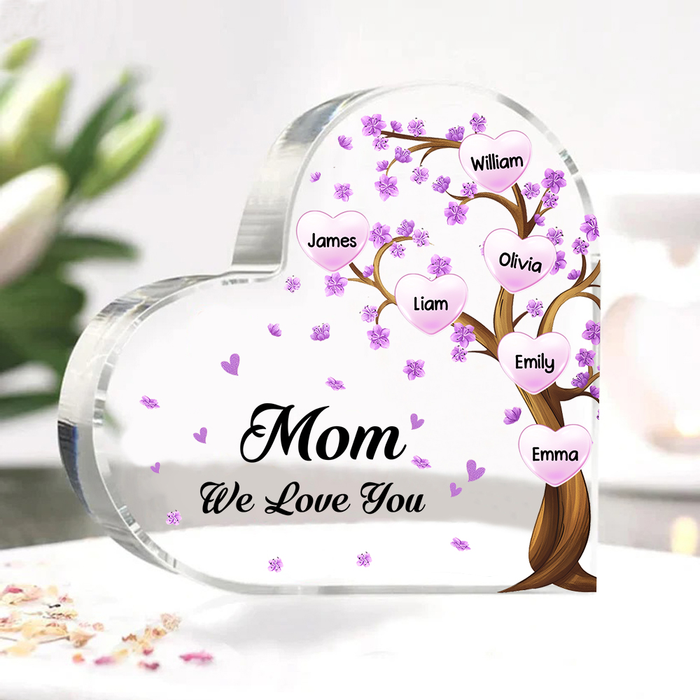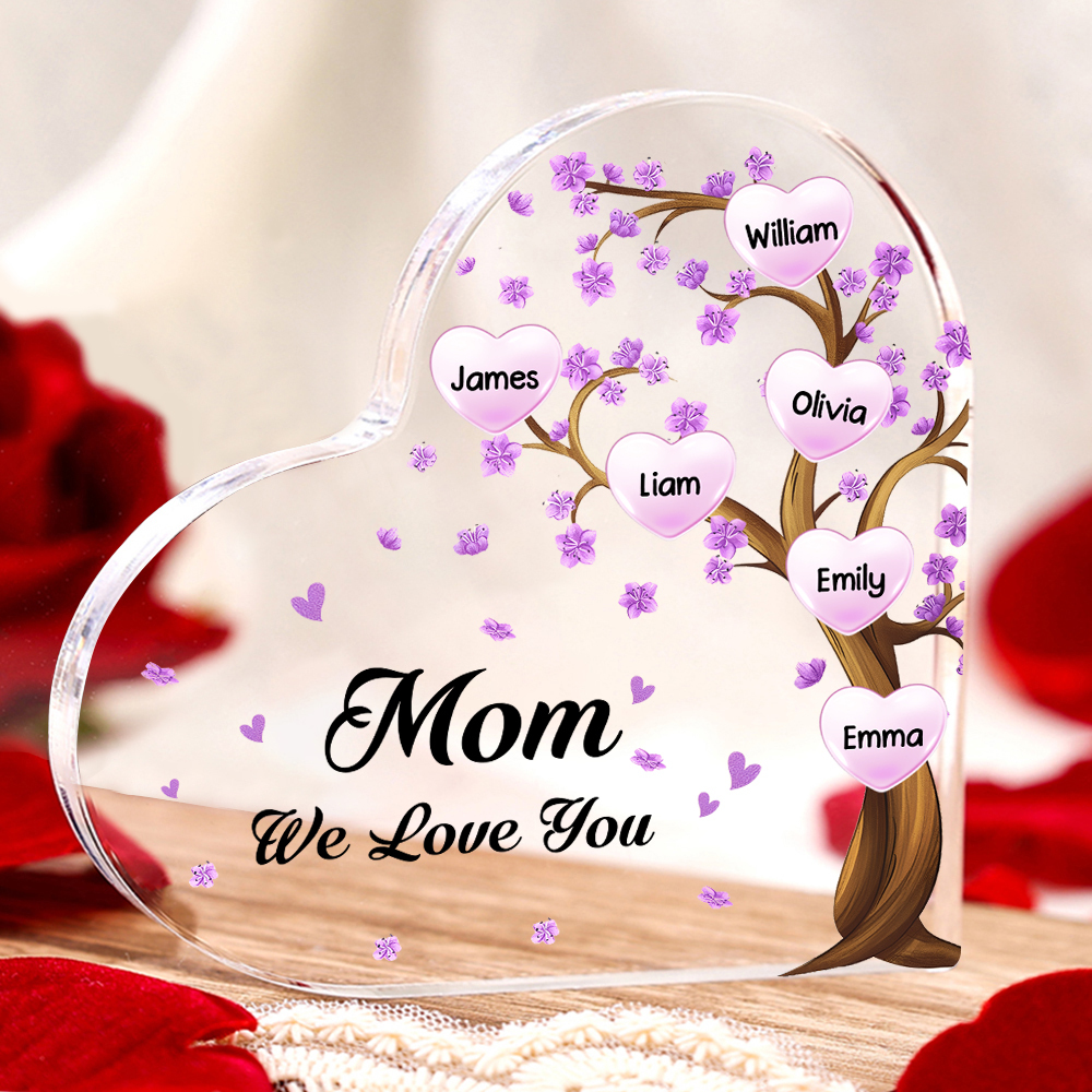 6 Names - Personalized Acrylic Heart Keepsake Custom Text Purple Flowers Tree Ornaments Gifts for Grandma/Mother